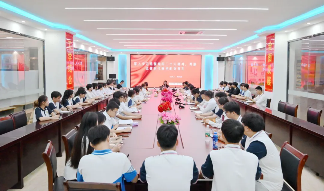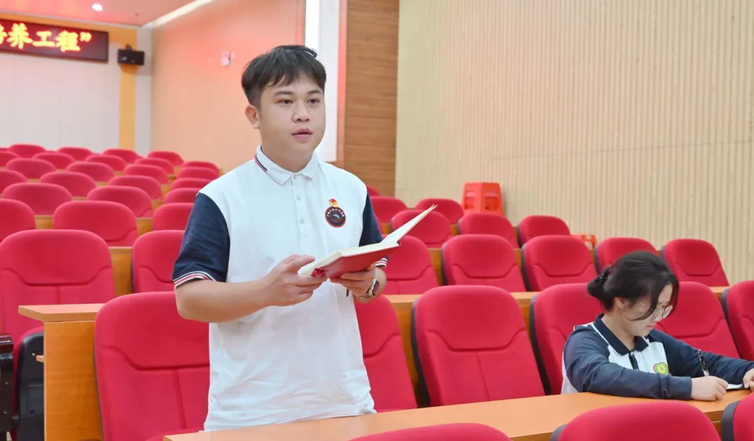团委副书记李丽清带领青马班学员开展《时代新人说,我和祖国共成长》青春励志演讲比赛视频观看和学习讨论活动。她希望学员们向榜样学习,坚定理想信念,努力拼搏,积极奋进,主动担负时代使命,在担当中历练,在历练中成长,为自己的青春交上一份满意答卷。