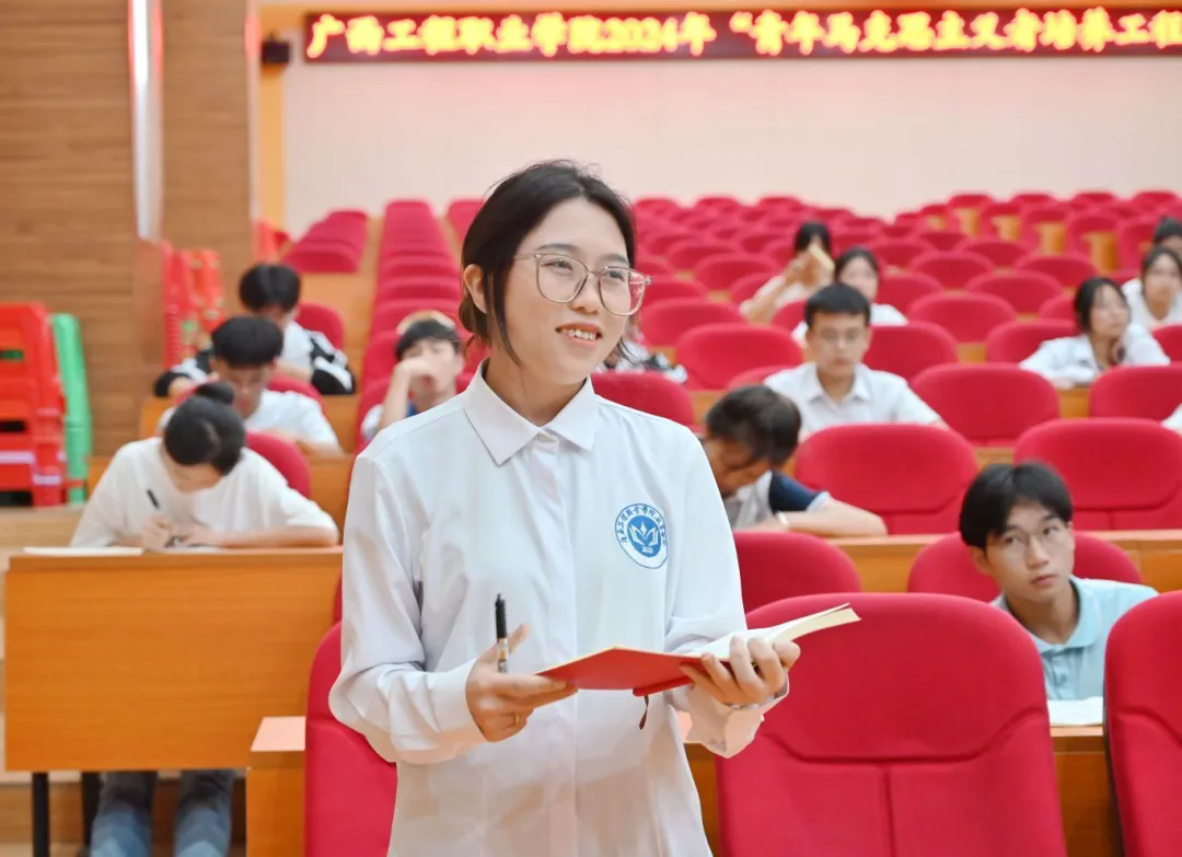 培训会上,党委副书记黄秋霞作《深入学习贯彻党的二十大精神,勇做走在时代前列的好青年》的专题教育。她带领全体学员学习了党的二十大精神、习近平总书记关于青年工作的重要论述、伟大的建党精神及以伟大建党精神为源头构筑的中国共产党人的精神谱系等。她希望学员们坚定不移听党话、跟党走,认真学习理论,加强实践锻炼,努力成为一名合格的青年马克思主义者,摒弃骄娇二气,争做有理想、敢担当、能吃苦、肯奋斗的新时代好青年,在科技创新、乡村振兴、社会服务、卫国戍边等各领域各方面勇当排头兵和生力军,争当黄文秀式好青年,奋力书写为中国式现代化挺膺担当的青春篇章。