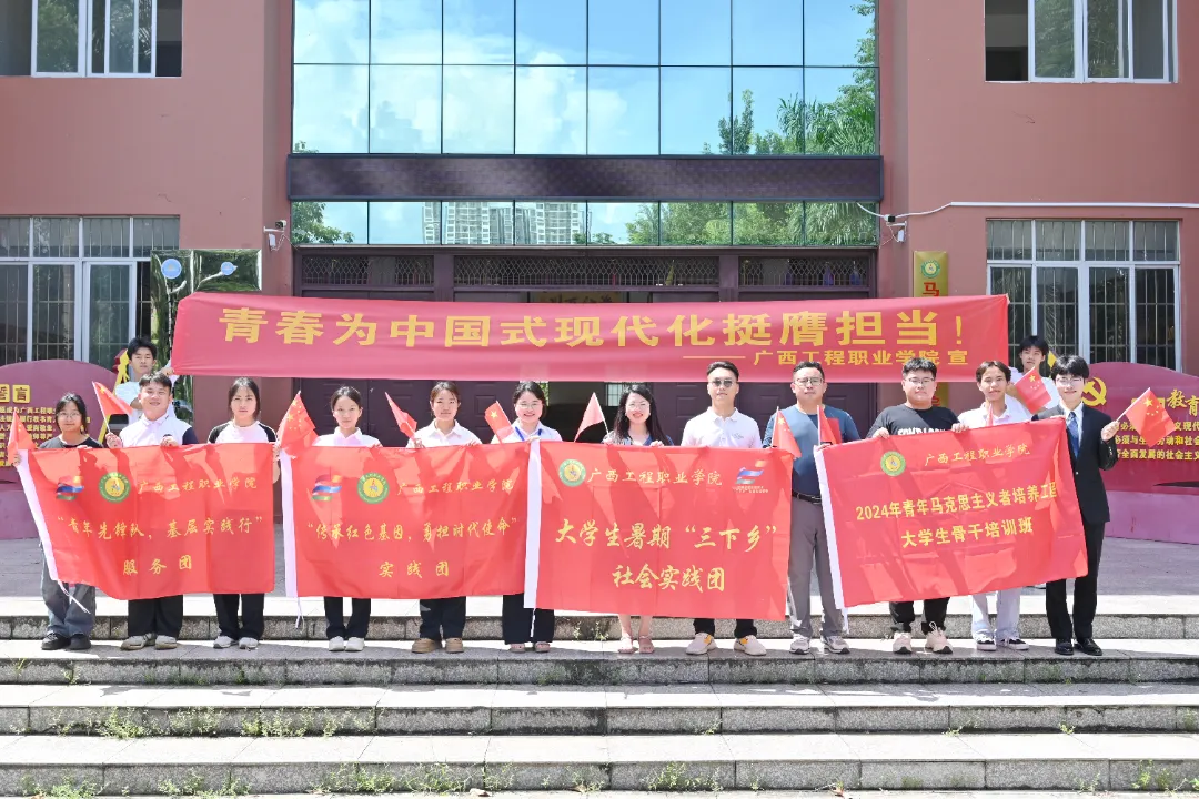 2024年7月16日至7月21日,学校团委组织党员师生、入党积极分子、团员代表等到河池市东兰县列宁岩、魁星楼、韦拔群故居、韦拔群纪念馆,百色市田东县百谷村(红军村)、右江革命纪念馆,百色平果市新安镇三合村、平果市码头镇城东社区等地开展行红色足迹与助力乡村振兴志愿服务活动。通过学习红色文化,听老党员讲红色故事,挖掘红色资源,传承红色基因,弘扬爱国主义精神,强化青年使命担当;通过开展禁毒防艾宣传、环境保护宣传、义务家电维修、心理咨询、关爱留守儿童、教育帮扶等特色实践服务活动,激励青年用青春为中国式现代化挺膺担当,不断在实践中增长才干、练就本领,以真才实学服务人民,助推乡村振兴建设。