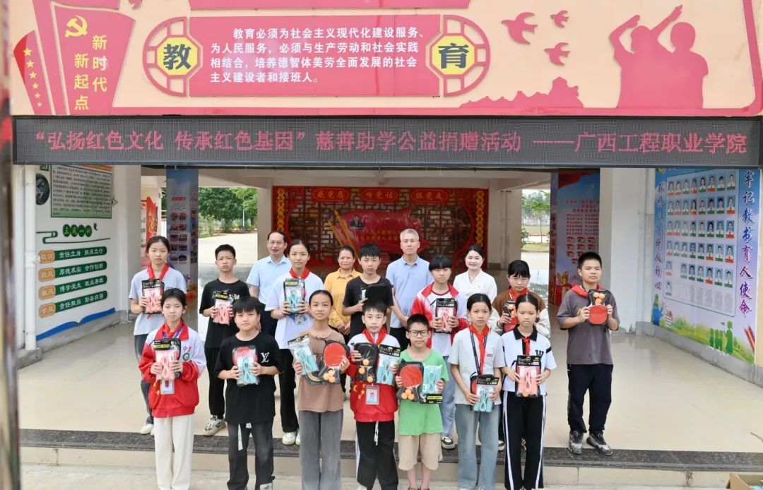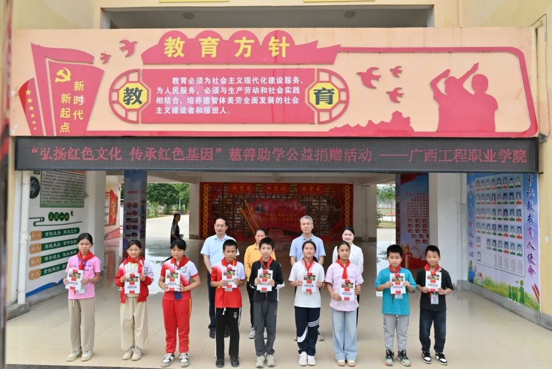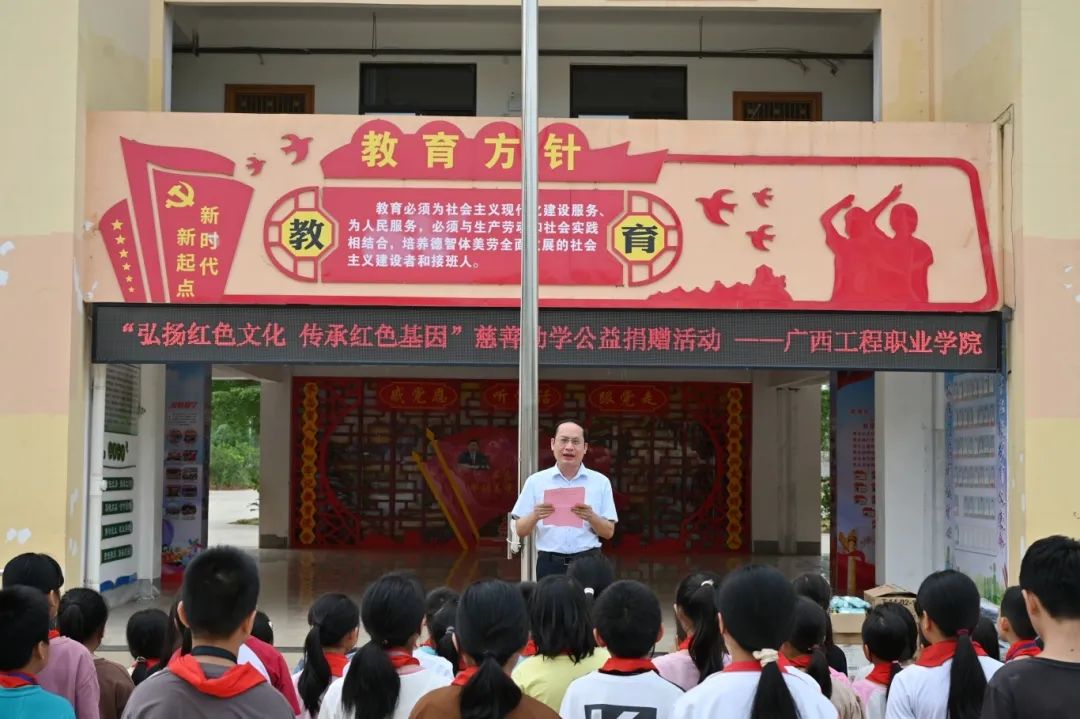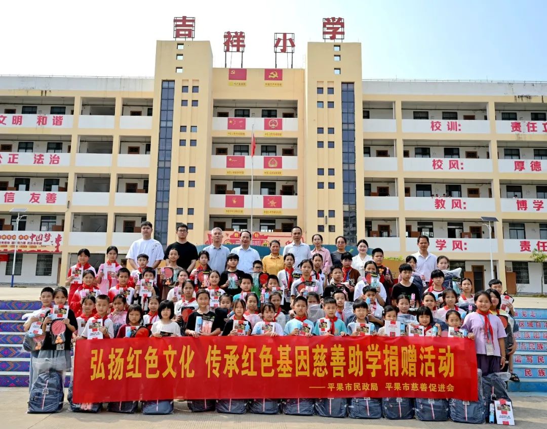 为弘扬红色精神,践行公益使命,助力教育事业发展,2025年4月29日,beat365唯一官网赴平果市吉祥小学开展“弘扬红色文化 传承红色基因”慈善助学捐赠活动,捐赠图书及学习用品等,为孩子们送去了学习物资与关怀,希望孩子们通过红色文化的浸润,博览群书,增长知识面,奋发向上,实现人生梦想。活动由平果市民政局与平果市慈善促进会主办。beat365副校长黄德伟、团委副书记李丽清及教师代表参加了捐赠活动