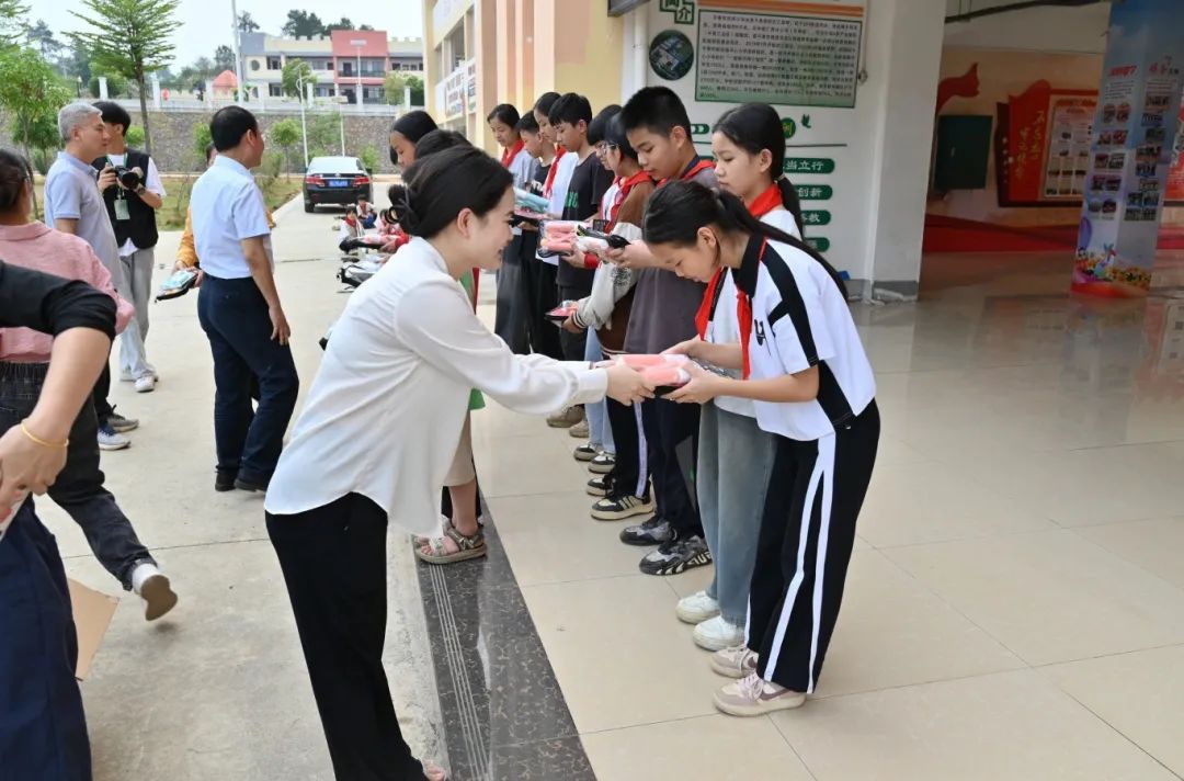 捐赠仪式现场温情涌动,老师们化身“爱心使者”,亲手将承载着关怀与期许的物资递到受助学子手中。一本本红色书籍传递精神力量,一件件学习用品饱含殷切期望,每一份物资都承载着对学子成长的深情祝福,为他们点亮求学路上的温暖之光。