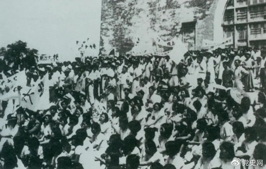 1936年6月13日,北平学生与市民在鼓楼前举行声势浩大的抗日集会。