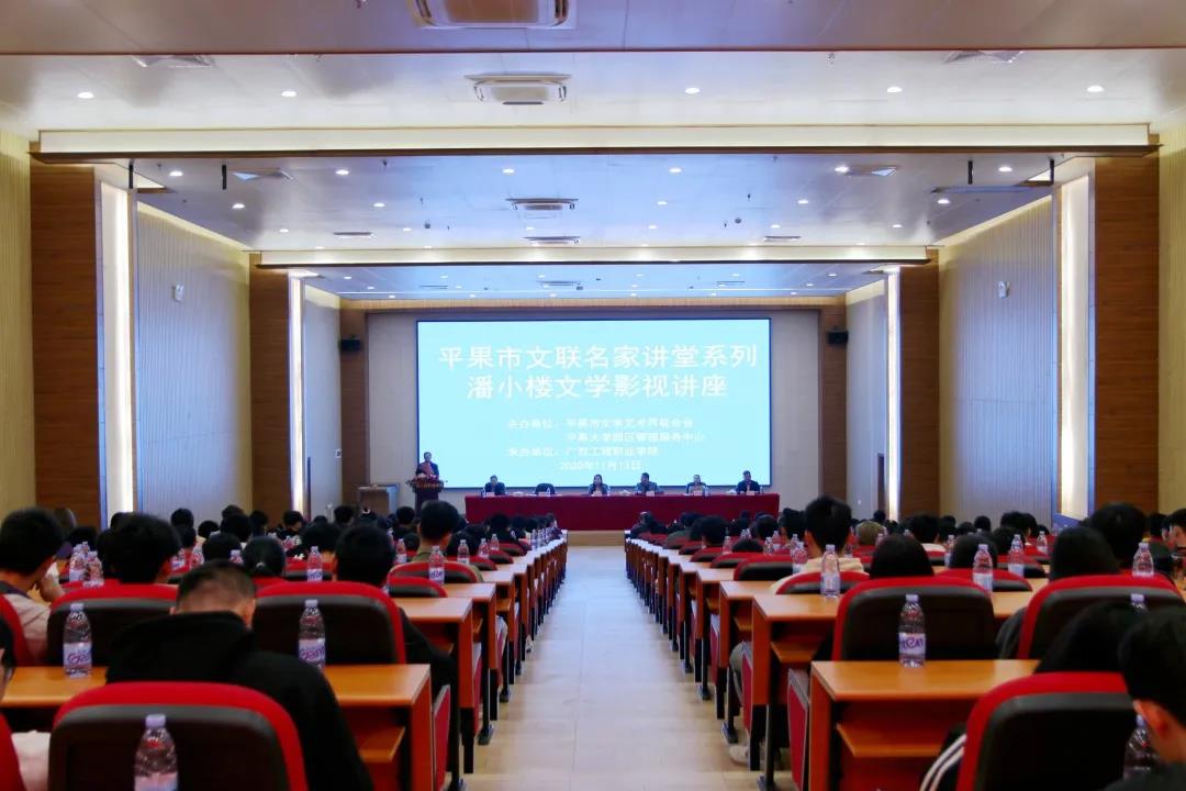 11月13日上午,由平果市文联、平果市大学园区管理服务中心主办,beat365唯一官网承办,平果市作家协会协办的“平果市文联名家讲堂系列”之“潘小楼文学影视讲座”在beat365唯一官网举行。平果市作家协会会员、平果铝右江源文学社、平果大学园区各高校文学社团及文学爱好者近300人到场聆听。