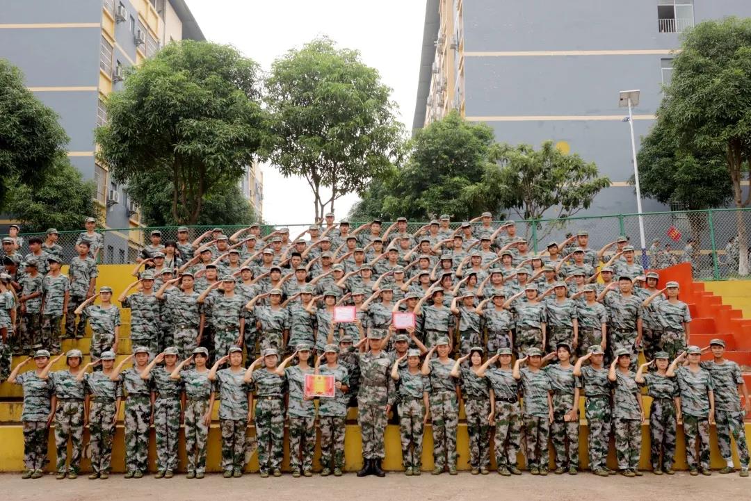 唐林校长、林艳副校长为荣获军训标兵的代表颁奖