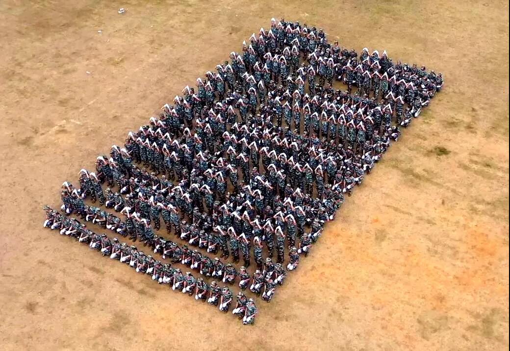 伴随着《国家》的旋律,72个连队英姿飒爽,他们以深厚的感情,整齐划一的手语,共同演绎了爱党、爱国的真挚情怀。