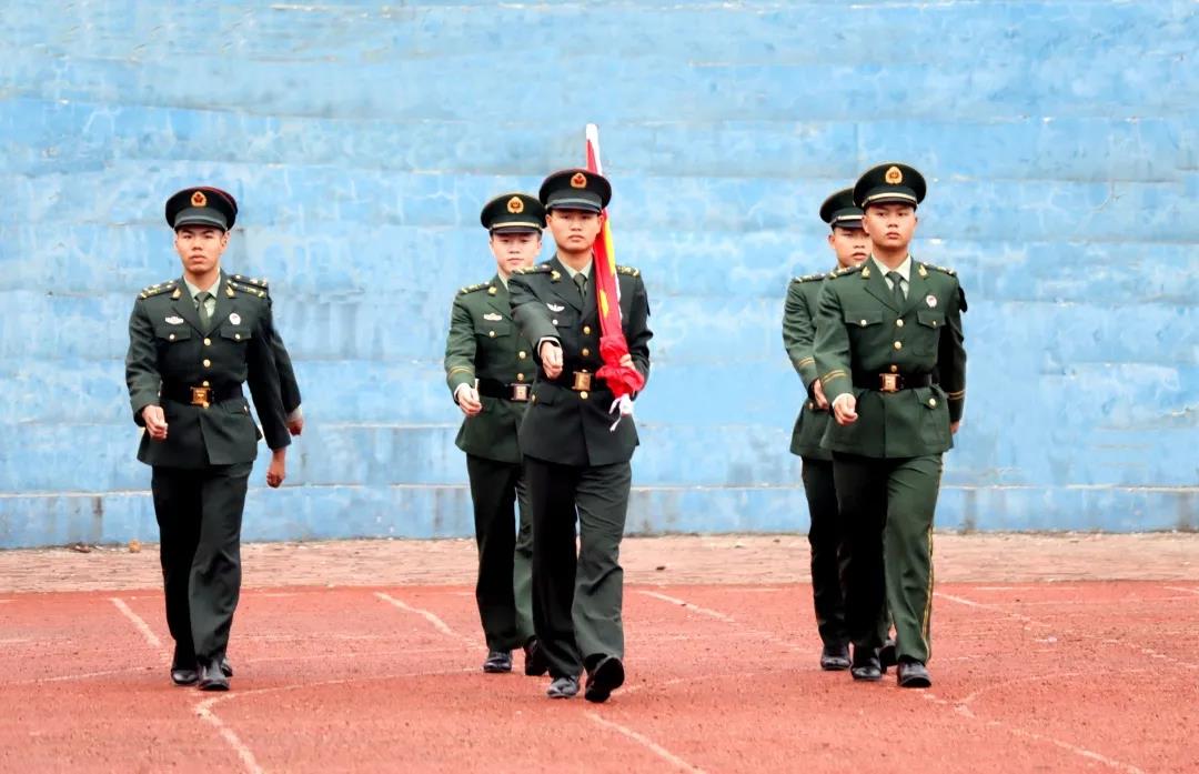 训练有素的国旗护卫队,一身军装,步伐整齐,护送国旗进场,大会在嘹亮的国歌声中拉开了帷幕。