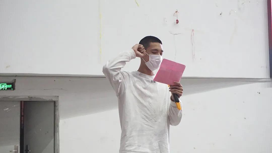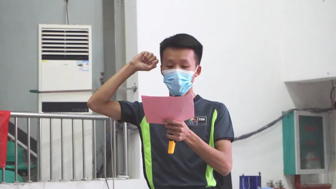 裁判员代表进行宣誓,表示全体裁判员将坚守岗位,恪尽职守,公平裁决,严格履行裁判员职责,预祝本次“新生杯”篮球取得圆满成功!