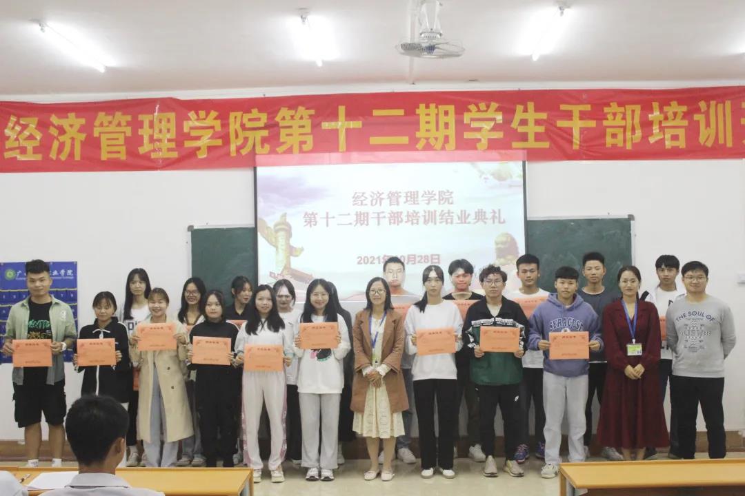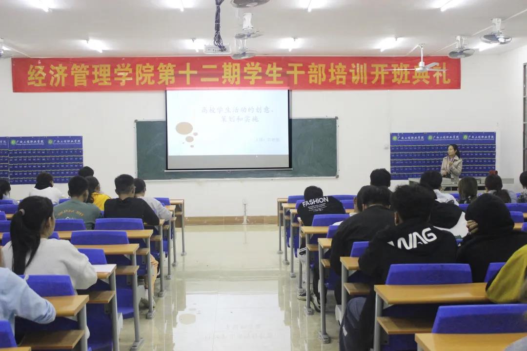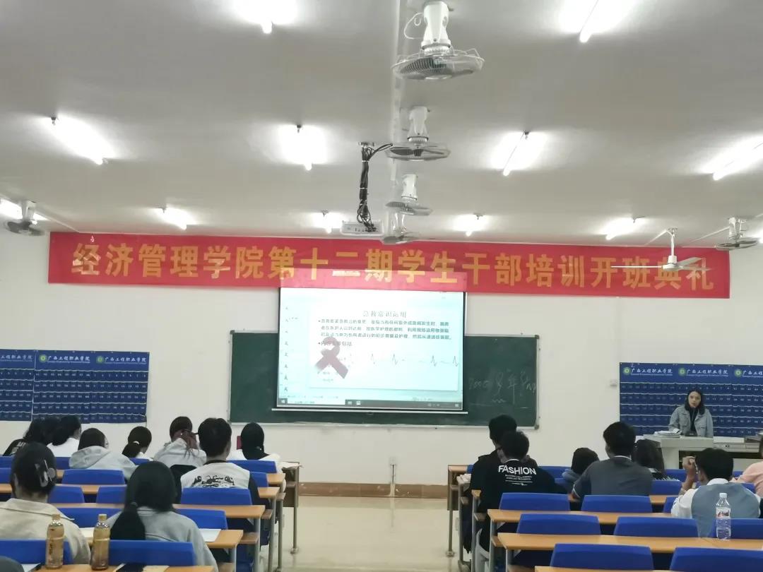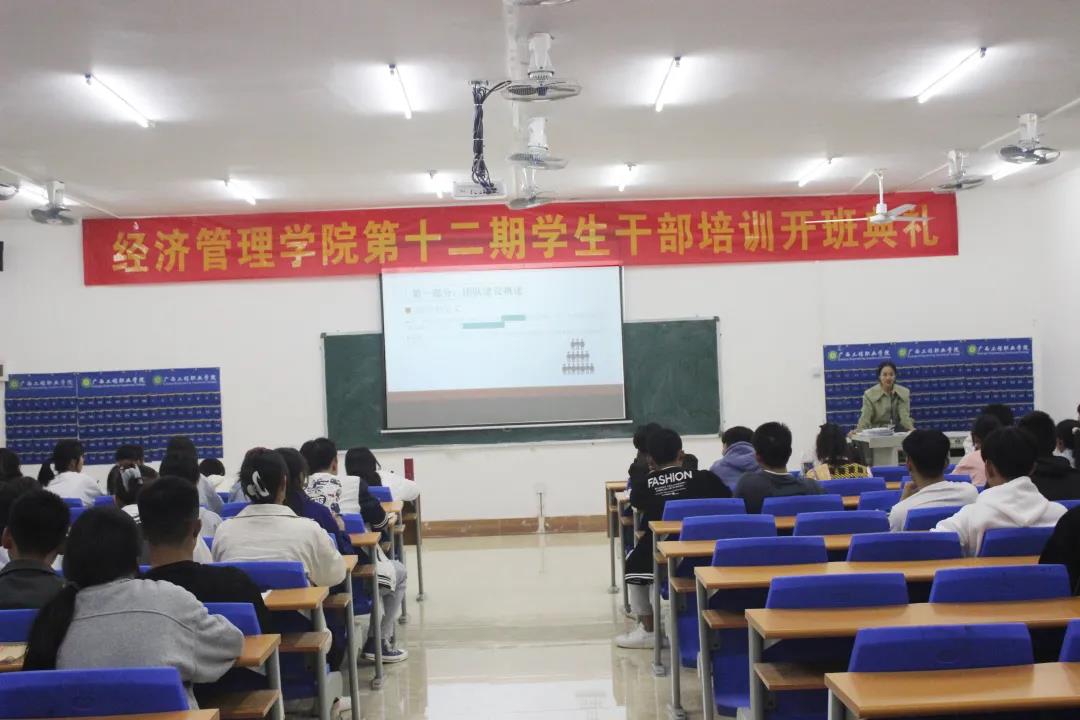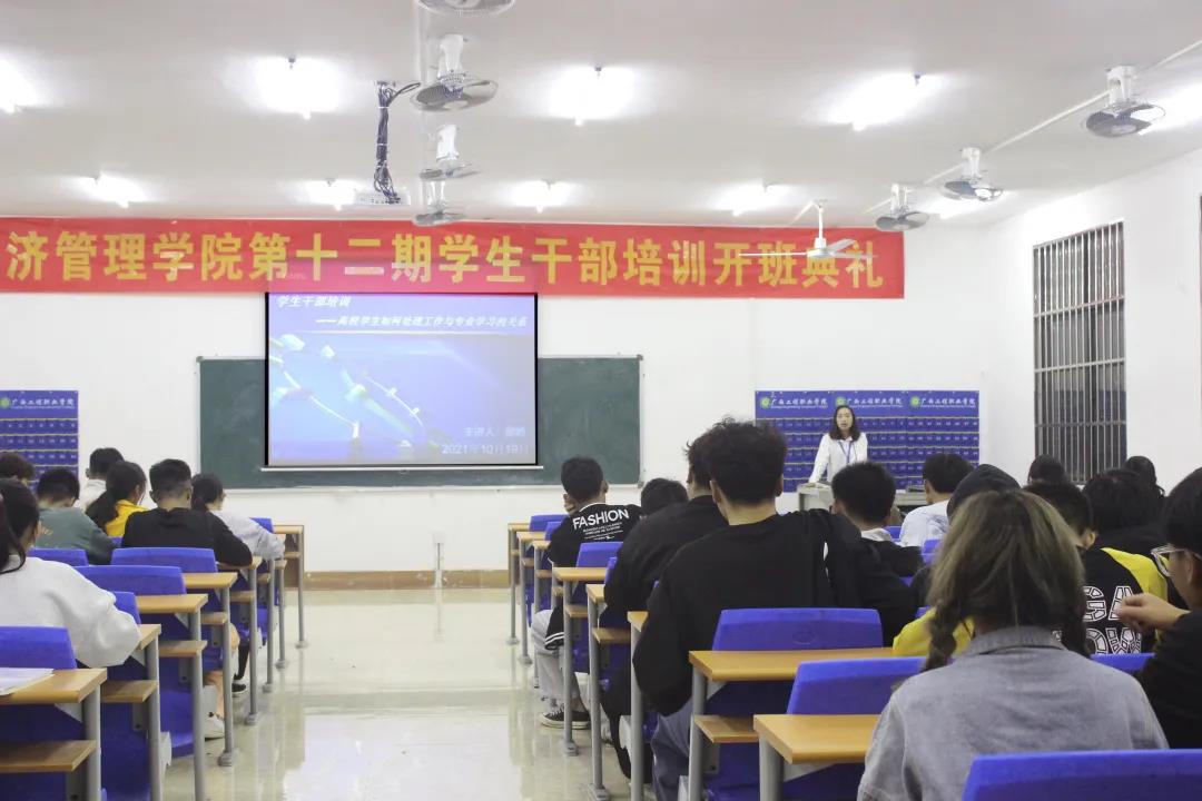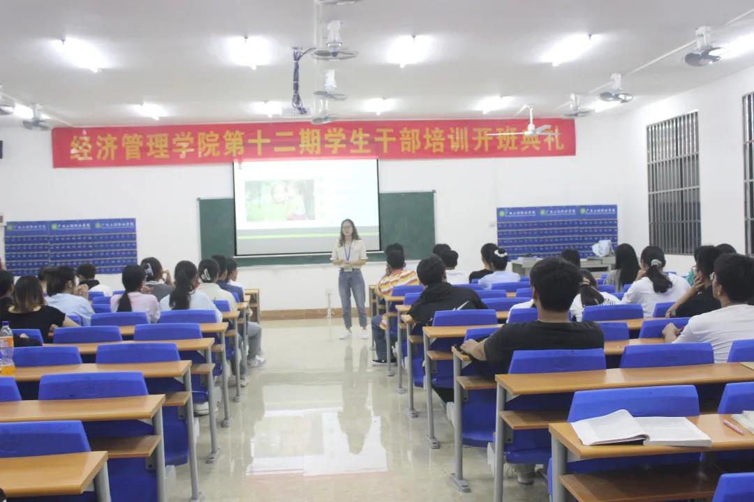 学校校长助理黄秋霞,经济管理学院党支部书记、副院长覃清香,经济管理学院办公室主任雷红、分团委书记李东英及辅导员、专职老师代表出席开班仪式,经济管理学院2021级全体学生干部参加培训。