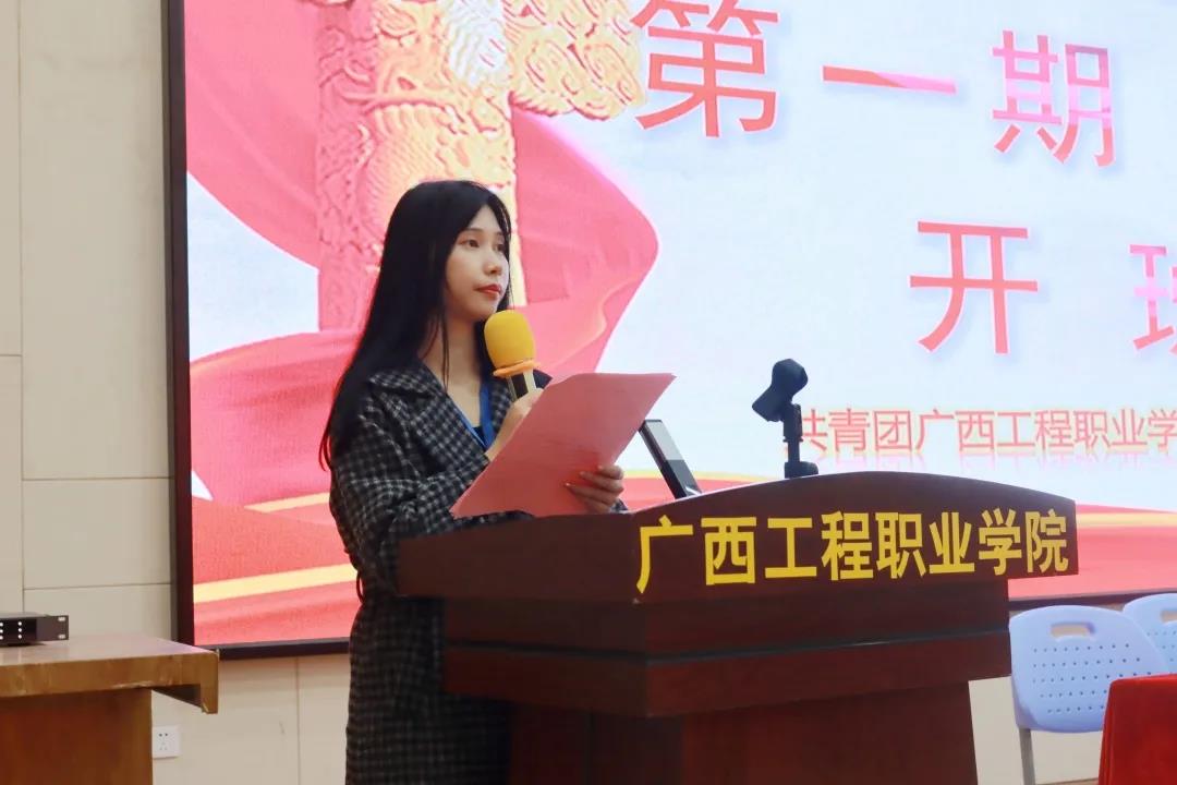 学校校长助理黄秋霞、党委办副主任黄香琴、校团委负责人梁凤琴及各分团委书记出席开班仪式。仪式由黄诗晴老师主持。