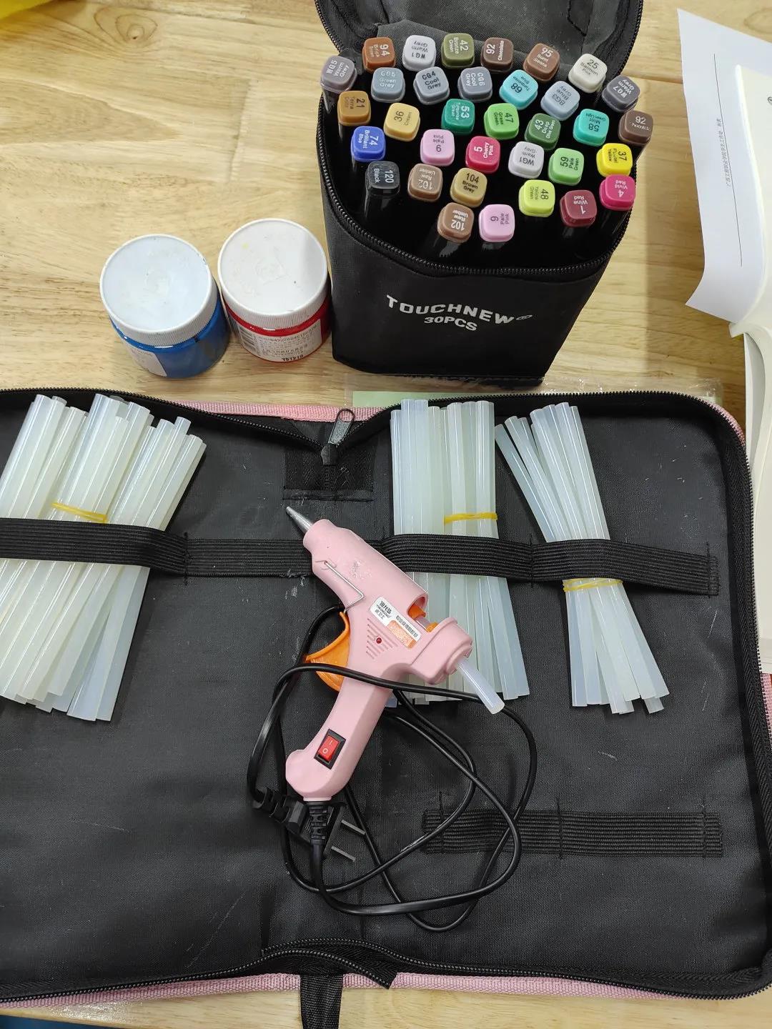 水彩笔、卡纸、超轻粘土、热熔胶、