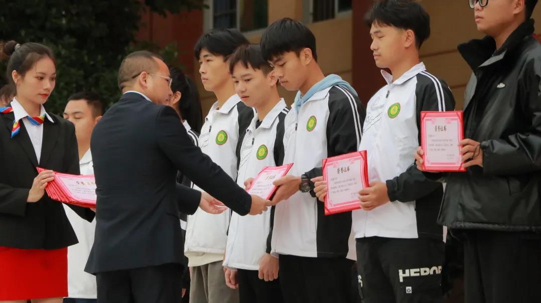 彭高彬副校长为荣获表彰的学生代表颁奖