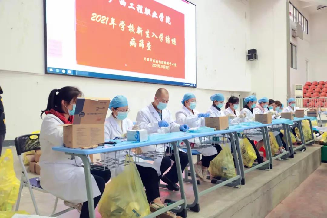 在学校教务处、学生工作处和各二级学院的大力支持和配合下,平果市人民医院在beat365体育馆为2021级新生及教职工进行结核病筛查工作。