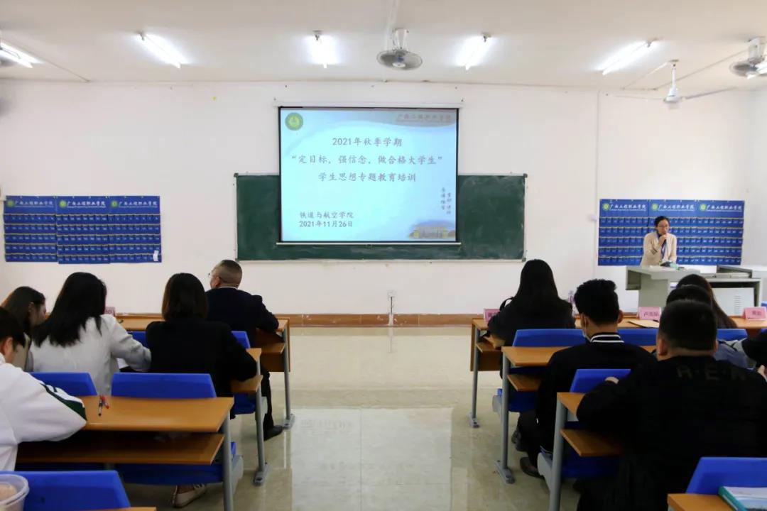 为进一步加强大学生思想政治教育,培育和践行社会主义核心价值观,促进广大青年在新时代中主动作为、勇担责任,践行“请党放心、强国有我”青春誓言,11月25日下午,学校铁道与航空学院在经管楼102室召开2021年秋季学期“定目标,强信念,做合格大学生”学生思想专题教育培训会。