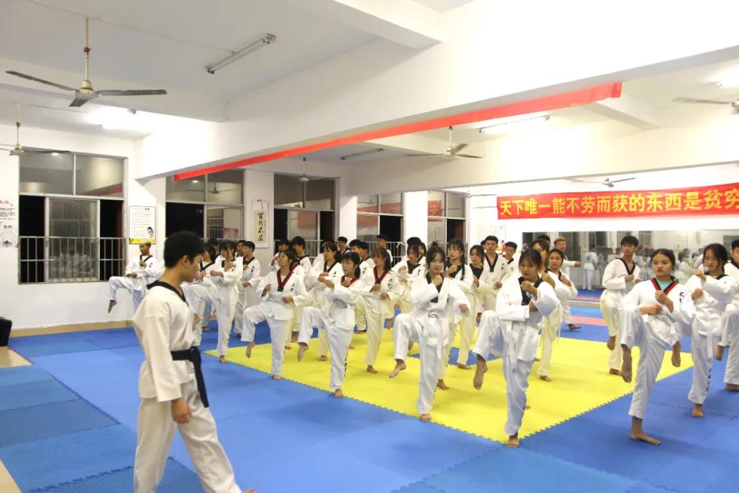 台上一分钟,台下十年功。当社员们站在舞台或比赛场大放异彩时,很少有人知道,他们在背后的付出。每天除去自己的专业学习任务,还要挤出时间进行跆拳道技能训练,年复一年,日复一日的训练,单调且枯燥,但是没人放弃这个运动,坚持自己的兴趣爱好,坚持训练,坚持锻炼身体,磨炼意志。