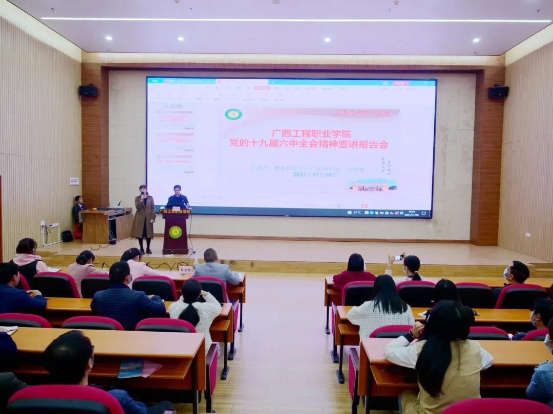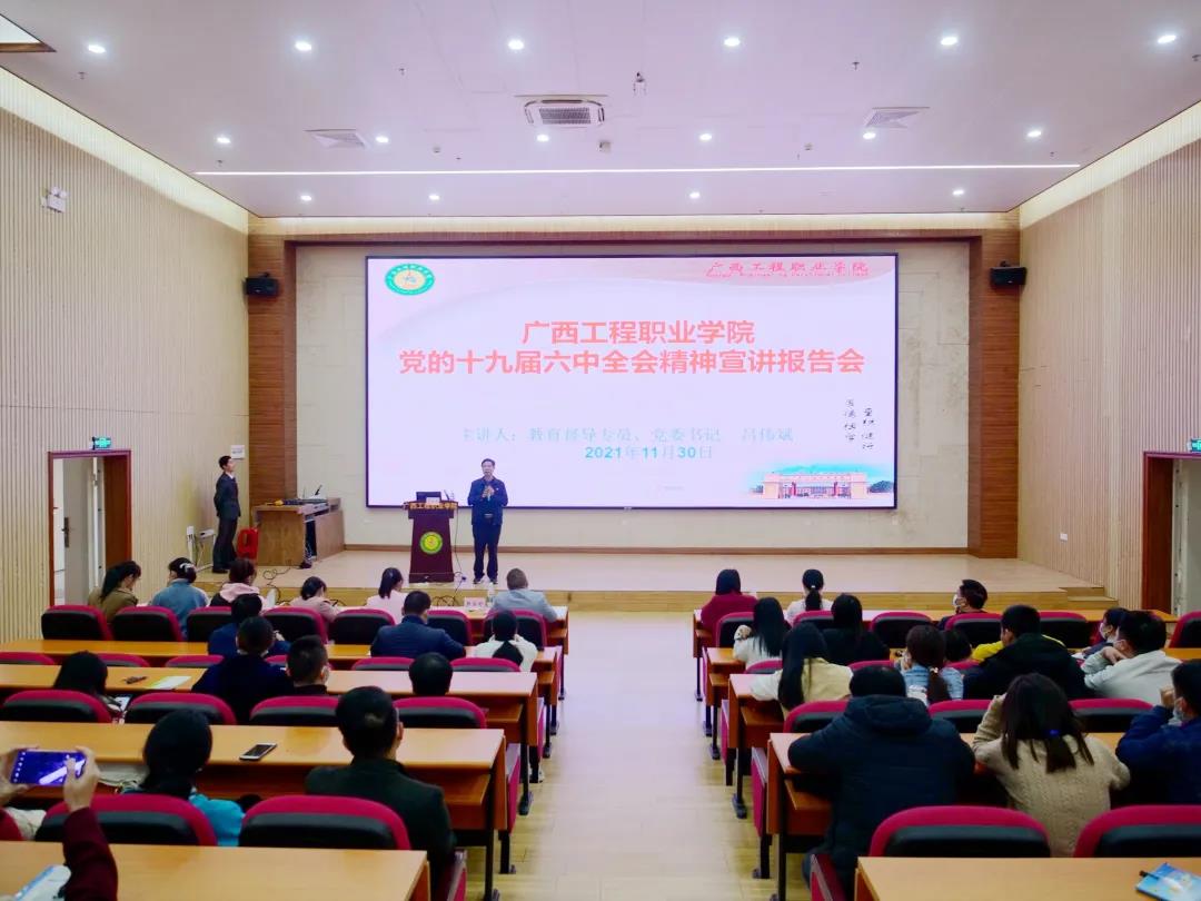 11月30日下午,beat365党委在图文信息大楼学术报告厅举行党的十九届六中全会精神宣讲报告会,教育厅教育督导专员、校党委书记吕伟斌作专题宣讲。校党委委员、副校长彭高彬,校长助理黄秋霞,各部门负责人,各党(总)支部书记,全体教师参加宣讲报告会,校党委办副主任黄香琴主持报告会。