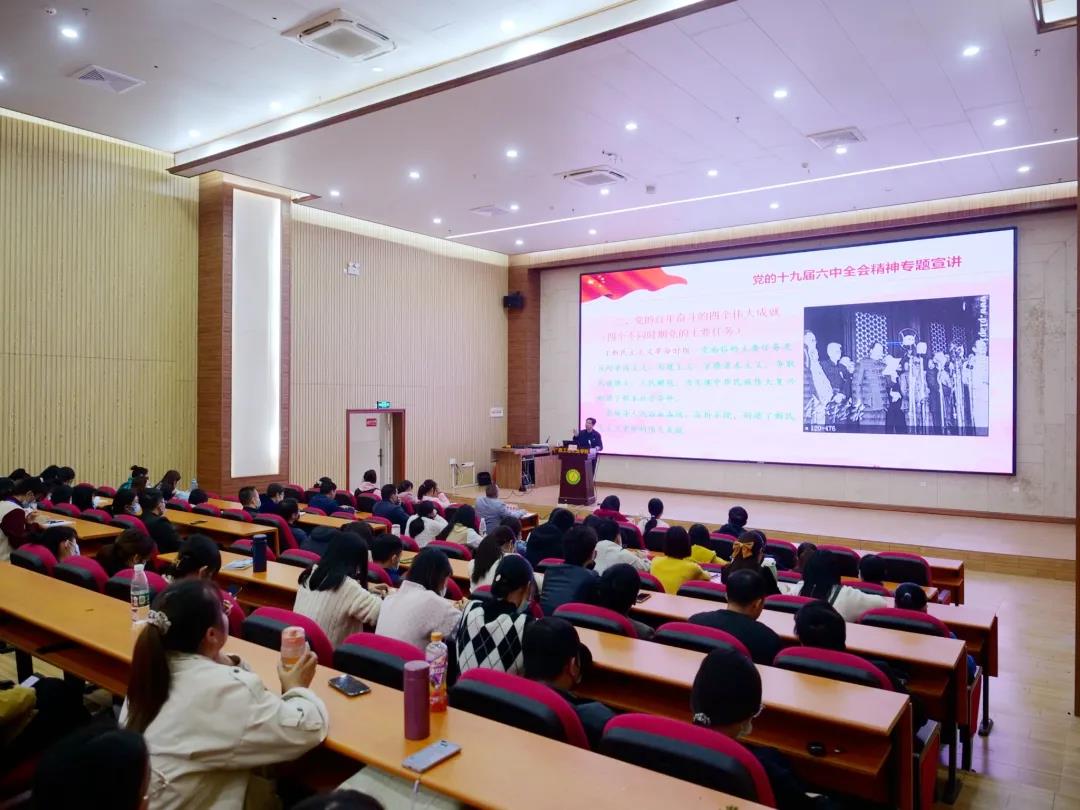 吕伟斌书记从党的十九届六中全会决议的重要意义、党的百年奋斗重大成就和历史经验、新时代马克思主义中国化的伟大飞跃、党的十八大以来十三方面的历史性成就、两个确立的决定性意义以及以史为鉴开创未来的重要要求等方面,对党的十九届六中全会精神进行了全面解读和阐释。宣讲报告会站位高、视野宽、思考深,紧扣学校实际,运用了丰富史实、生动案例、详实数据,让人听后深受启发、深受教育、深受鼓舞。