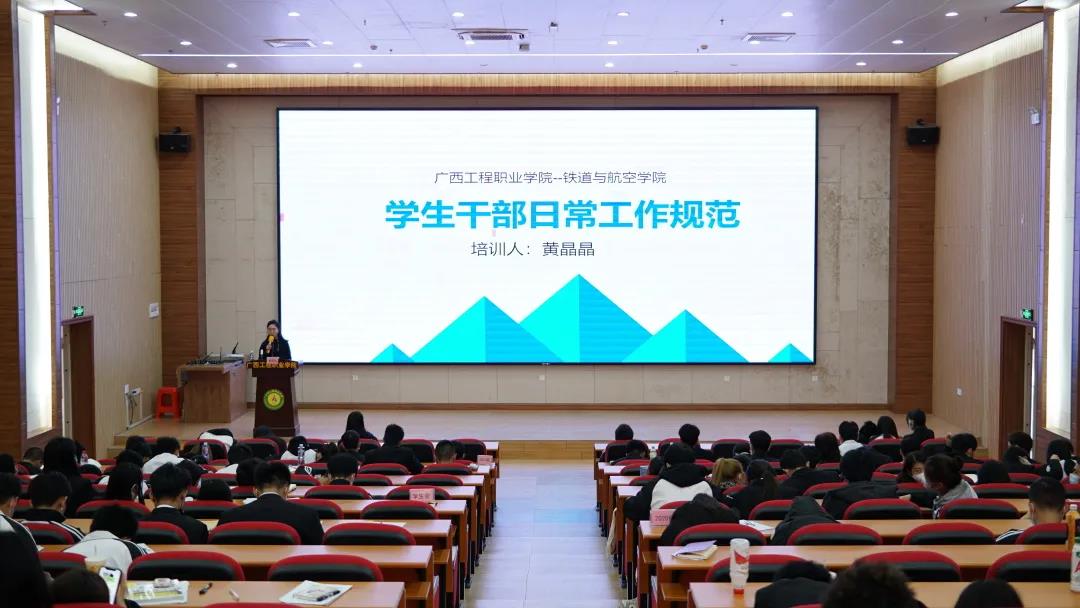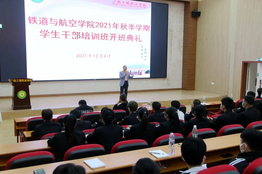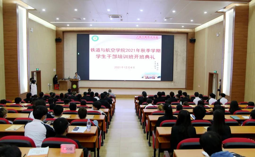 12月4日上午,学生干部培训班开班仪式在图文信息大楼报告厅举行。学校党委委员、副校长彭高彬,铁道与航空学院党支部书记、副院长覃凤姣,学生科长谢小玲出席开班仪式,全体2020级、2021级学生干部参加培训。仪式由覃凤姣副院长主持。