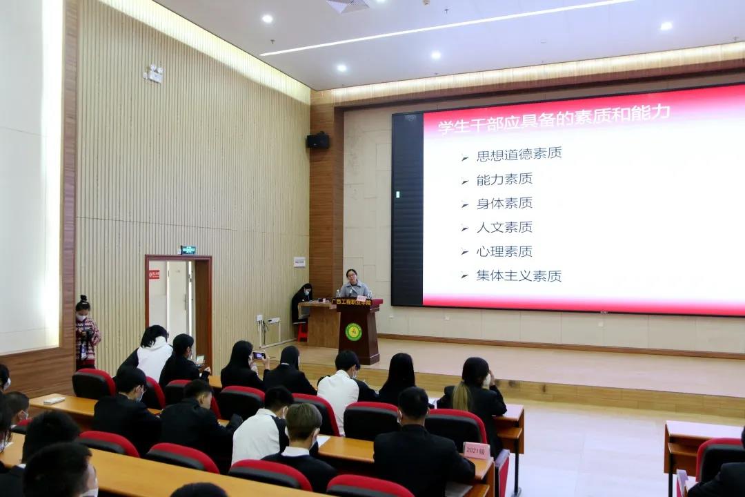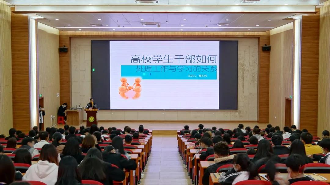 莫礼伟老师作题为《高校学生干部如何处理工作与专业学习的关系》的专题培训,他要求学生干部要明确工作和学习的关系,正确认识自己的职责使命,在做好本职工作的同时要兼顾学习,做品学兼优、工作能力强的优秀学生干部。
