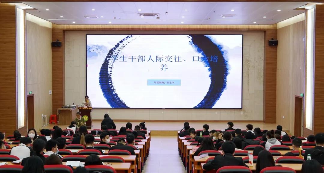 黄晶晶老师作题为《学生干部日常工作规范》的专题培训,她要求全体学生干部要以高度的责任心、强烈的使命感、饱满的热情参与到日常的工作和学习中,不断提升自己的综合素质和工作能力,谱写奋斗的青春之歌。