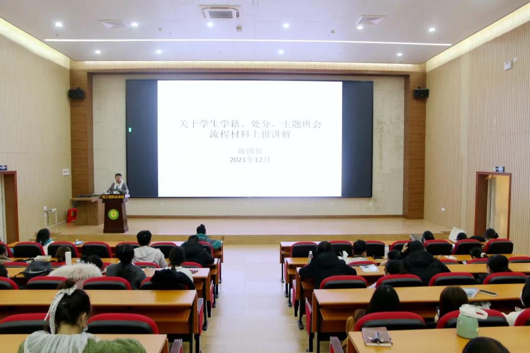 学生工作处陈国昇老师系统详实地为大家讲解了学校学籍管理的相关要求,详细解读了学校学籍管理制度中的入学注册、休学与复学、违纪处分、毕业与结业等方面内容。希望学生科长、辅导员进一步提高学生学籍管理水平,认真落实学校学籍管理的工作安排,组织学生认真学习学校学籍管理规定,做到熟知、遵守、践行,以帮助同学们形成良好的学习习惯,顺利度过大学学习生活,按期毕业,学有所成。