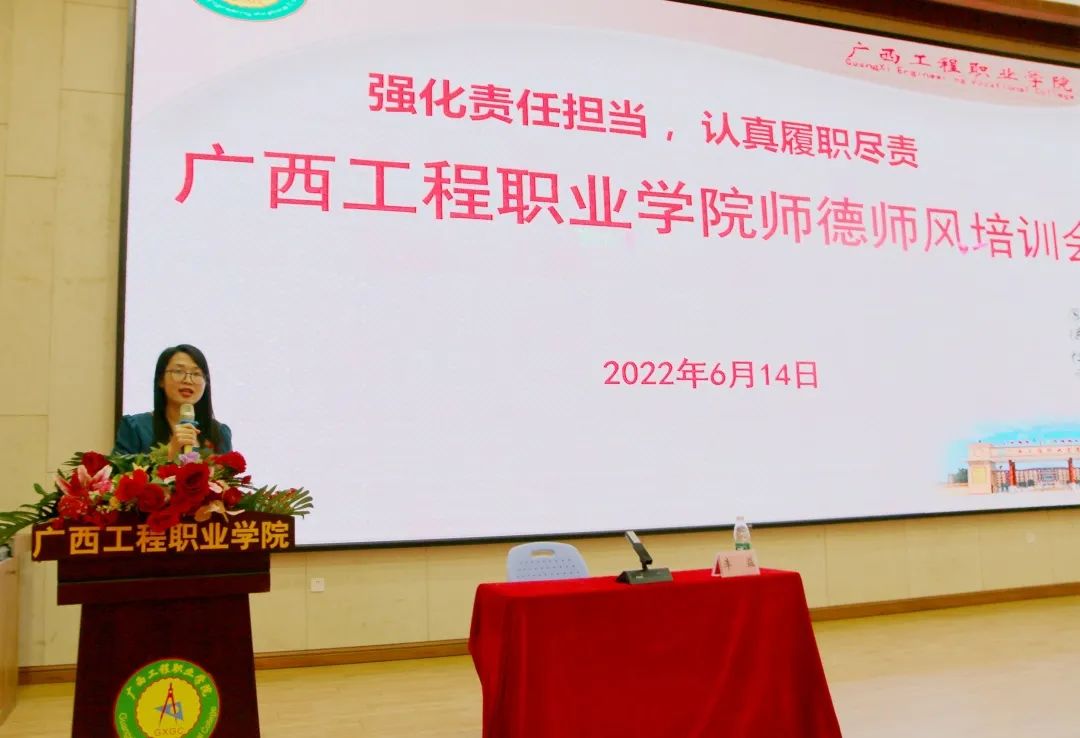 为进一步推进学校师德师风建设,落实立德树人根本任务,着力建设一支政治素质过硬、作风优良、品德高尚、能力过硬的教师队伍,6月14日下午,beat365唯一官网“强化责任担当 认真履职尽责”师德师风培训会在图文信息大楼学术报告厅举行。纪委书记、副校长彭高彬作了题为“坚持立德树人 做四有好老师”的专题培训。学校党政领导班子出席培训会,全体教职工参会,会议由党委副书记黄秋霞主持。