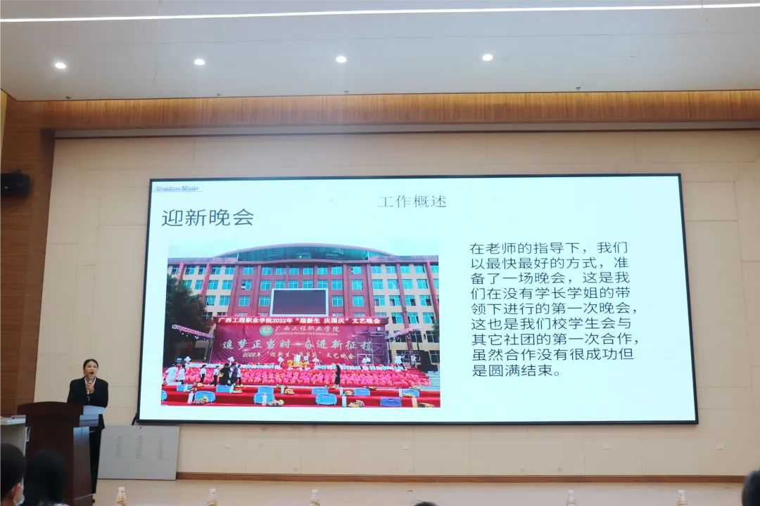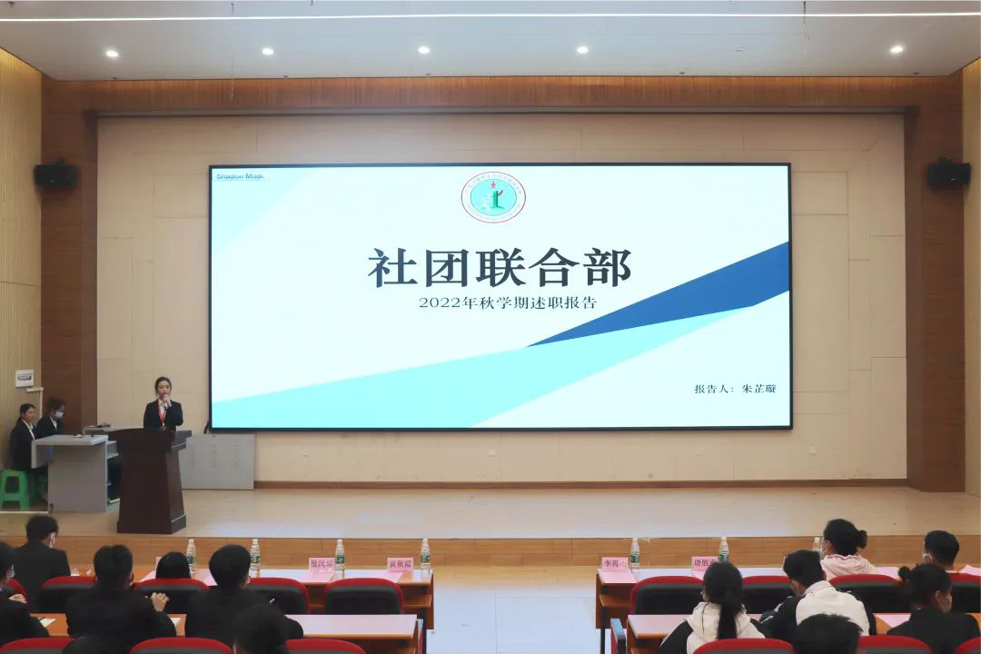 会上,学校共34个学生组织负责人分别就2022年一年以来,本学生会、本社团的基本情况、取得成绩、特色亮点、存在问题及下一步计划进行逐一述职。
