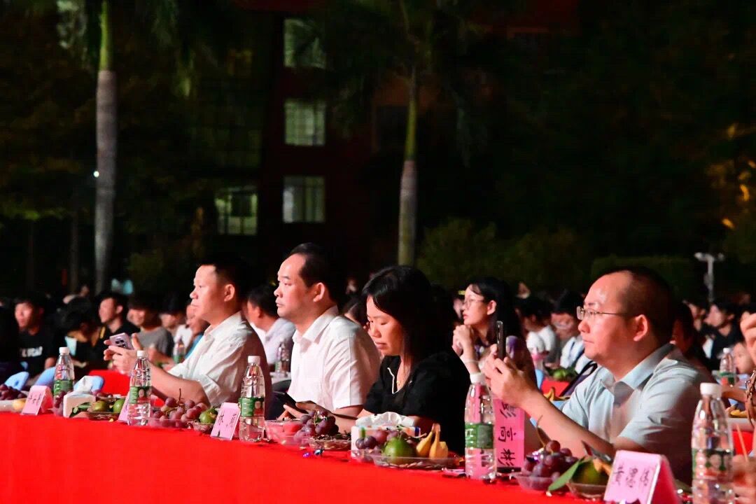 党委书记、督导专员蒙本曼宣布2023年“迎新生·贺中秋·庆国庆”文艺晚会开始,霎时礼炮响起,烟花绽放,点亮了广工程院的夜空,整个校园沉浸在欢乐的海洋。今夜灯光璀璨,今夜梦想点燃。师生们聚在一起,共庆国庆、欢度中秋佳节。