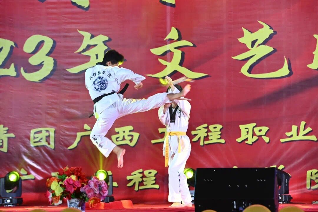 迎新跆舞融合了舞蹈和音乐、跆拳道三大元素,为观众们带来了一场振奋人心的表演,他们精湛的技巧和力量,引爆了全场的热情。