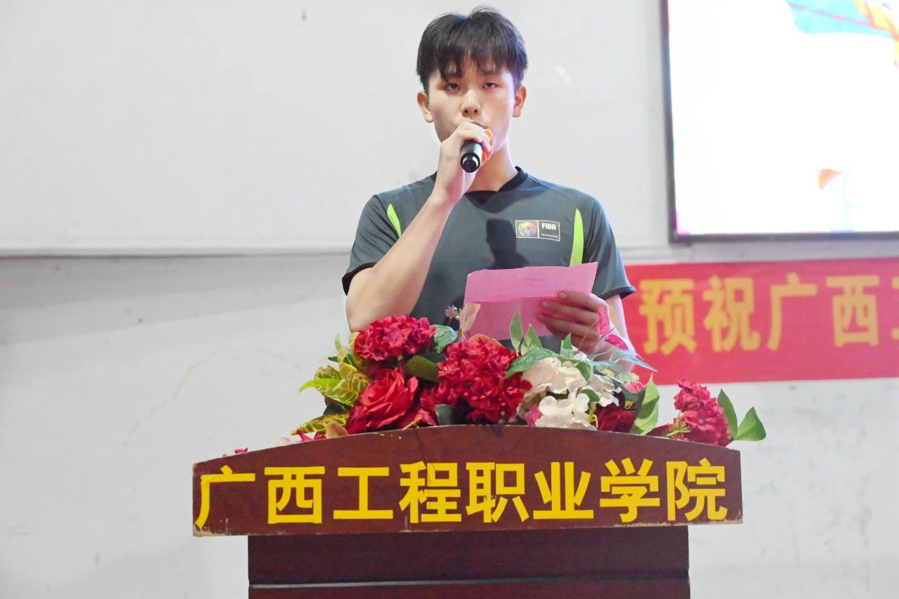 学校团委副书记李丽清致辞,她指出,认真举办“新生杯”篮球比赛,既引导广大学生牢固树立“健康第一”的理念,强健学生体魄,丰富校园文化生活,又是学校全面推进素质教育的一个重要举措。希望同学们在比赛中展现出高尚的体育精神,用行动诠释“友谊第一,比赛第二”的真谛。我们期待每一位参赛选手都能发挥出自己的最佳水平,你们的每一次努力,每一次突破,都将成为赛场上的亮点,相信同学们一定能在比赛中展现出篮球的独特魅力。祝愿学校所有新生学业有成,前程似锦,并宣布beat365唯一官网2023年“新生杯”篮球赛开幕!