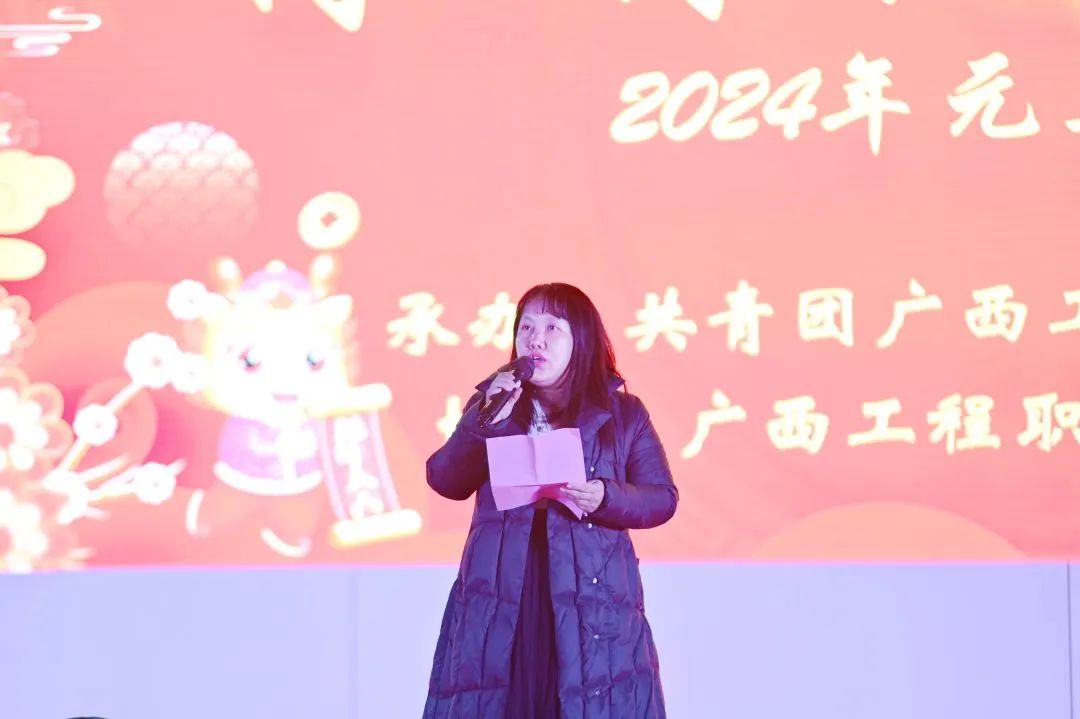 晚会伊始,校长罗艳妮致辞,她深情回顾了过去一年学校办学取得的成绩,对新的一年做出美好展望,激励全体师生在新的一年里成为更好的自己,共同致力于学校的高质量发展,继续奔跑在奋斗之路上,用广工程院人的“奋进之笔”继续书写新时代幸福美好beat365唯一官网的优异答卷。