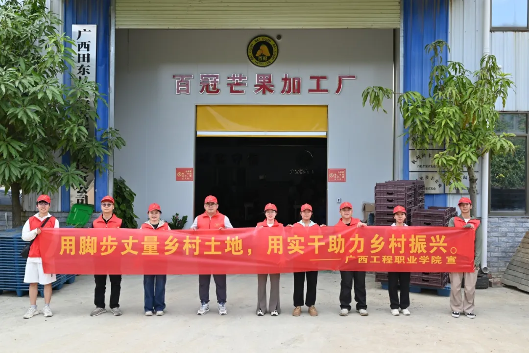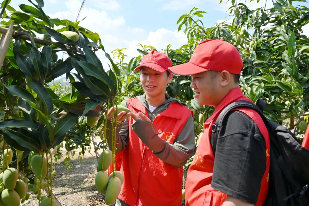 “青年先锋队,基层实践行”服务团走进那朗芒果园、百冠芒果加工厂开展助力乡村振兴志愿服务活动,与果农、工作人员了解田东县芒果的种植、销售、产业链等情况。
