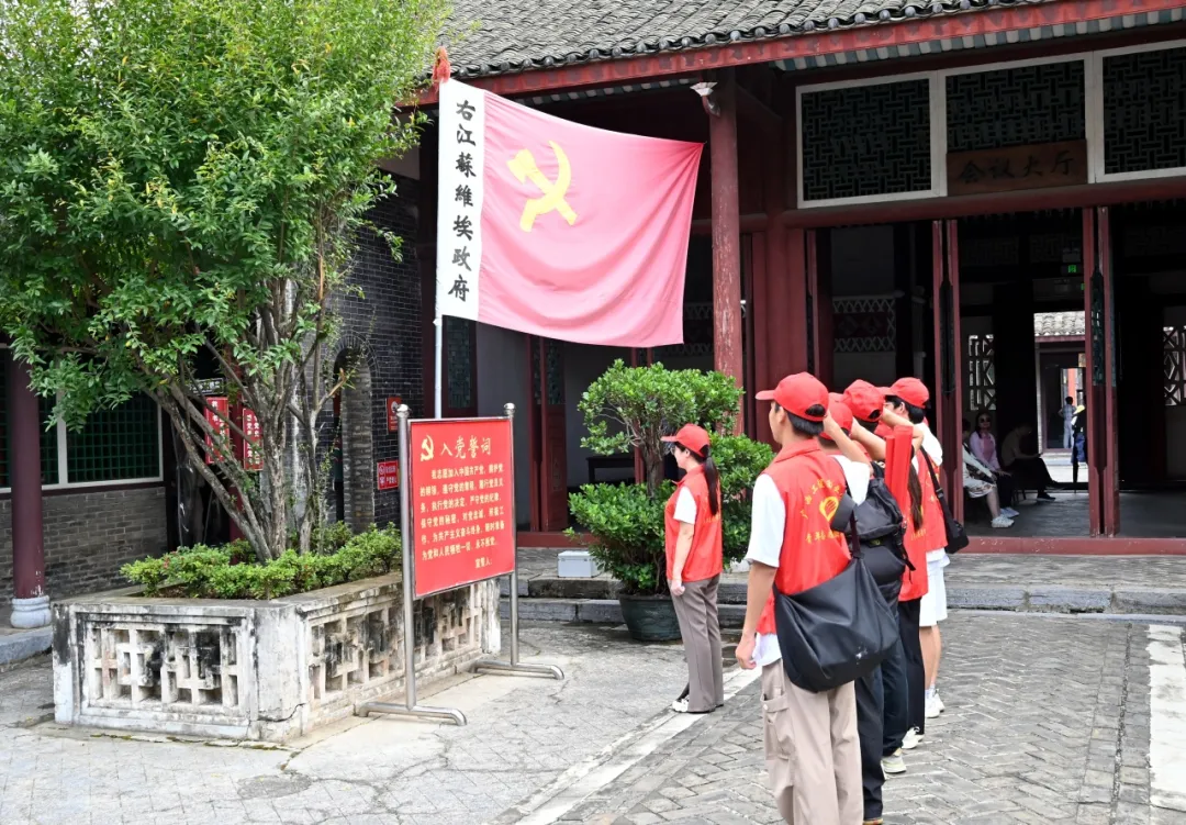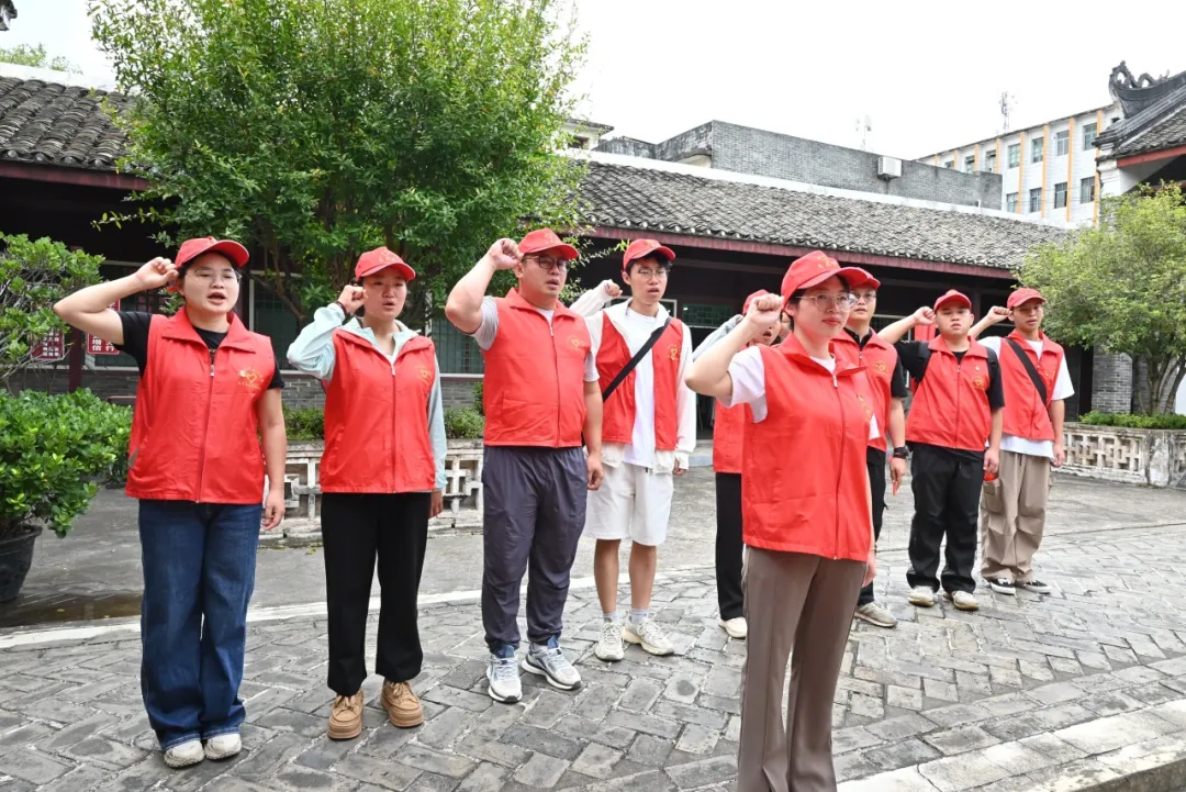在参观完纪念馆后,党委副书记黄秋霞带领全体师生党员在馆内重温入党誓词。全体师生党员以激昂的誓言,彰显不负先辈遗志,不忘初心使命,踔厉奋发进取的坚定理想信念。