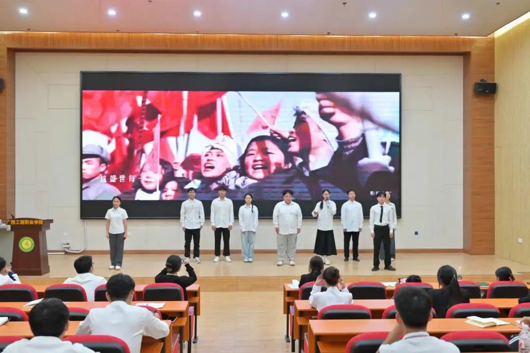 “筑梦青春队”朗诵《拳拳爱国心,熠熠中华魂》。他们激昂热情地讲爱国故事,从古代仁人志士到近代先烈,细节如重锤敲心。展现中华魂传承,似光照亮前路,点燃爱国之火,让我们用青春捍卫中华魂。