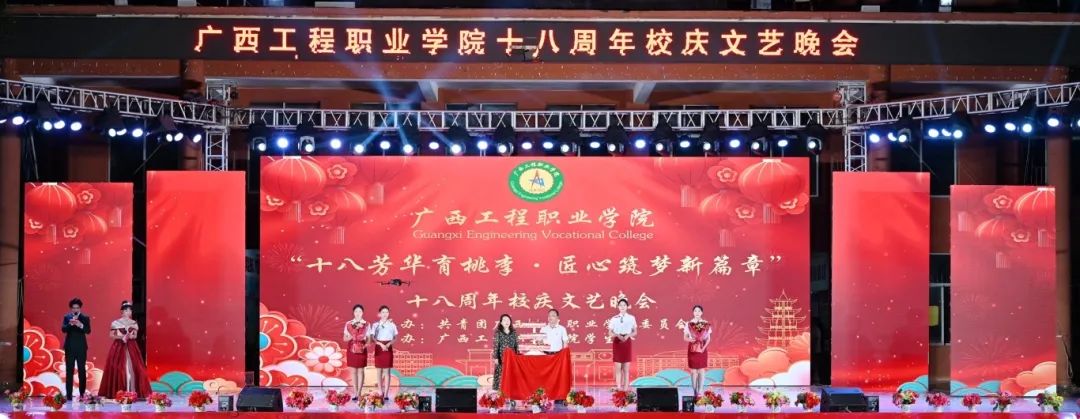 学校董事长李益,党委书记、督导专员蒙本曼,副董事长林艳,党委副书记、校长罗艳妮,党委副书记黄秋霞,纪委书记、副校长彭高彬,副校长黄德伟,副校长蒋茂丽,校长助理李明泽,校长助理梁善雅出席晚会,全体师生到现场观看校庆晚会。