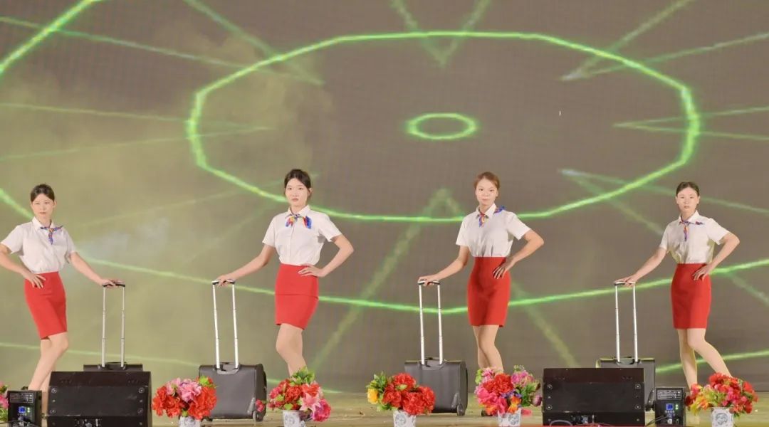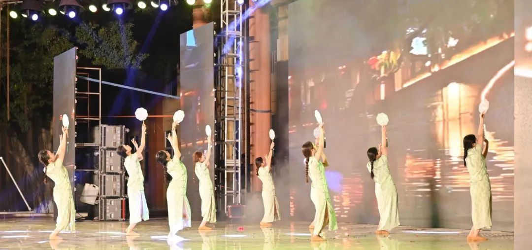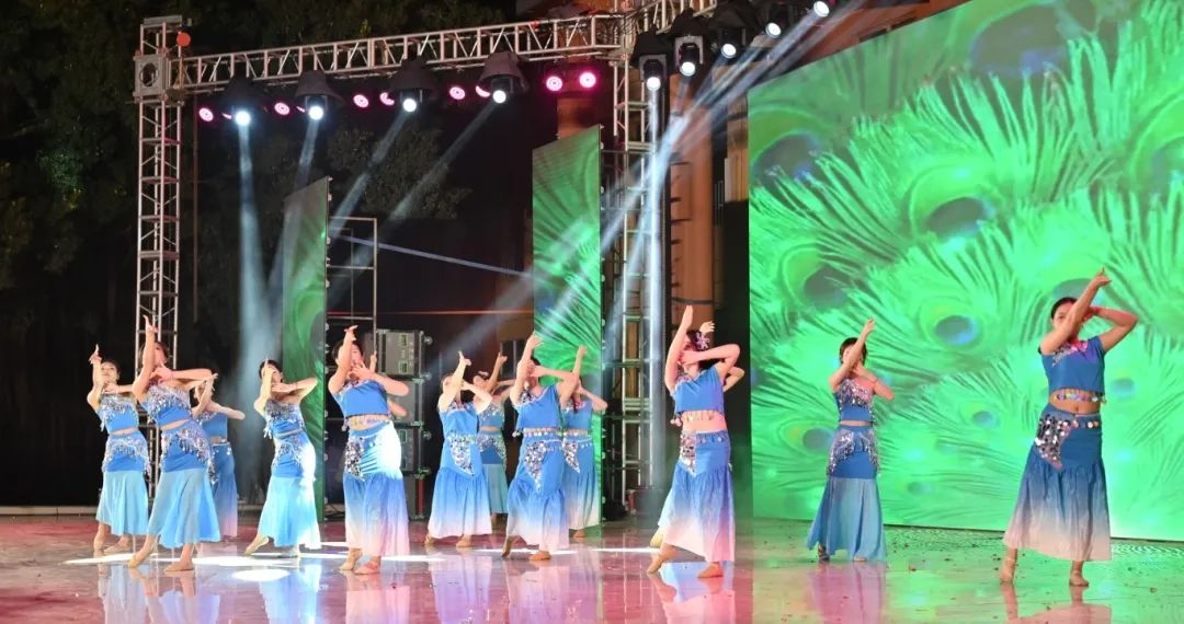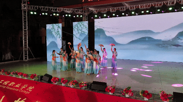 舞者们以婀娜身姿,勾勒出民族风情与校园精神交织的美妙画卷。她们宛如春日里破土而出的新芽,带着清新与灵动,在舞台上缓缓舒展。每一个动作都轻盈飘逸,仿佛是被春风轻拂过的柳枝,柔美而富有韵律