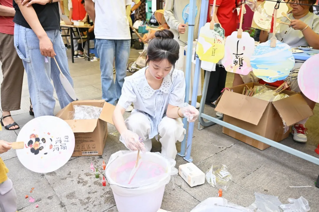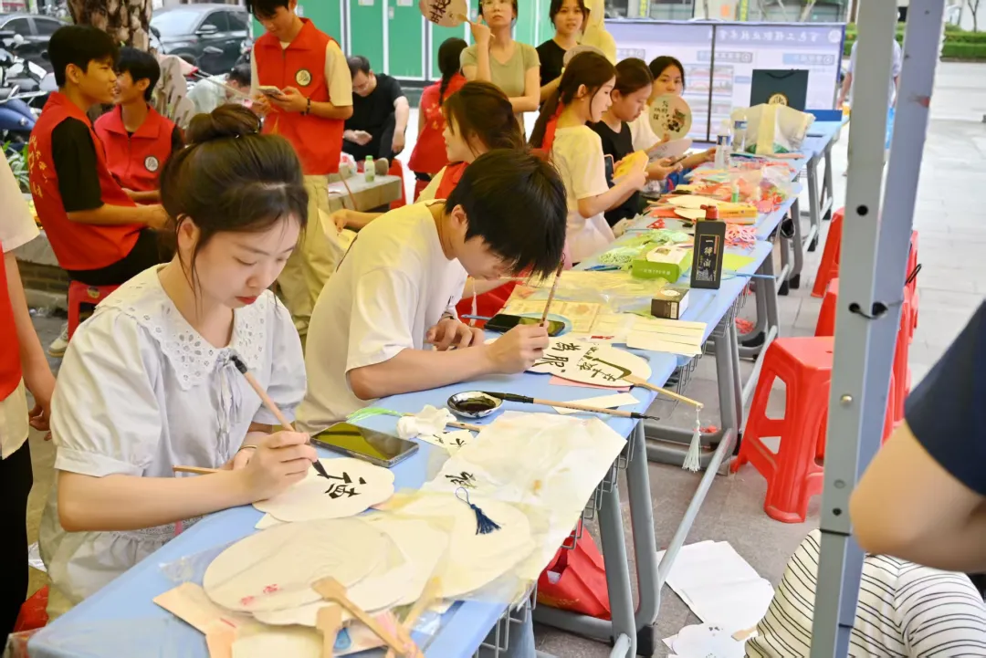 志愿者们在小扇子上书写着充满祝福的话语,吸引了居民驻足欣赏。剪纸区,志愿者们手把手地教大家剪纸技巧,一张普通的红纸,在巧手下变成了栩栩如生的图案。