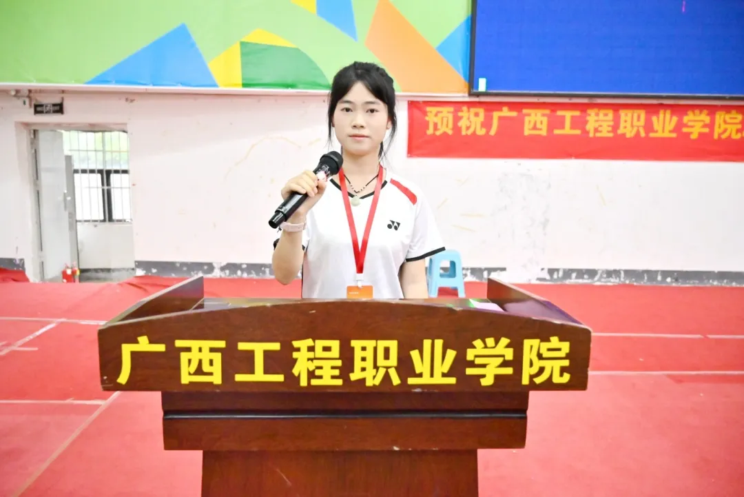 团委副书记李丽清致辞。她说到,本次活动以羽毛球比赛为载体,不仅传承精神、展现新时代青年拼搏风貌,也为爱好者搭建交流成长平台。希望运动员发扬奥林匹克精神,培养团队协作精神与坚韧意志,以饱满斗志参赛,尊重对手裁判、赛出风格水平,赛中互学互鉴、赛后收获友谊。同时,希望裁判员严守规则、公正执裁,工作人员恪尽职守、做好保障。最后,她预祝赛事圆满成功,愿运动员挥洒汗水、绽放光彩、赛出佳绩!