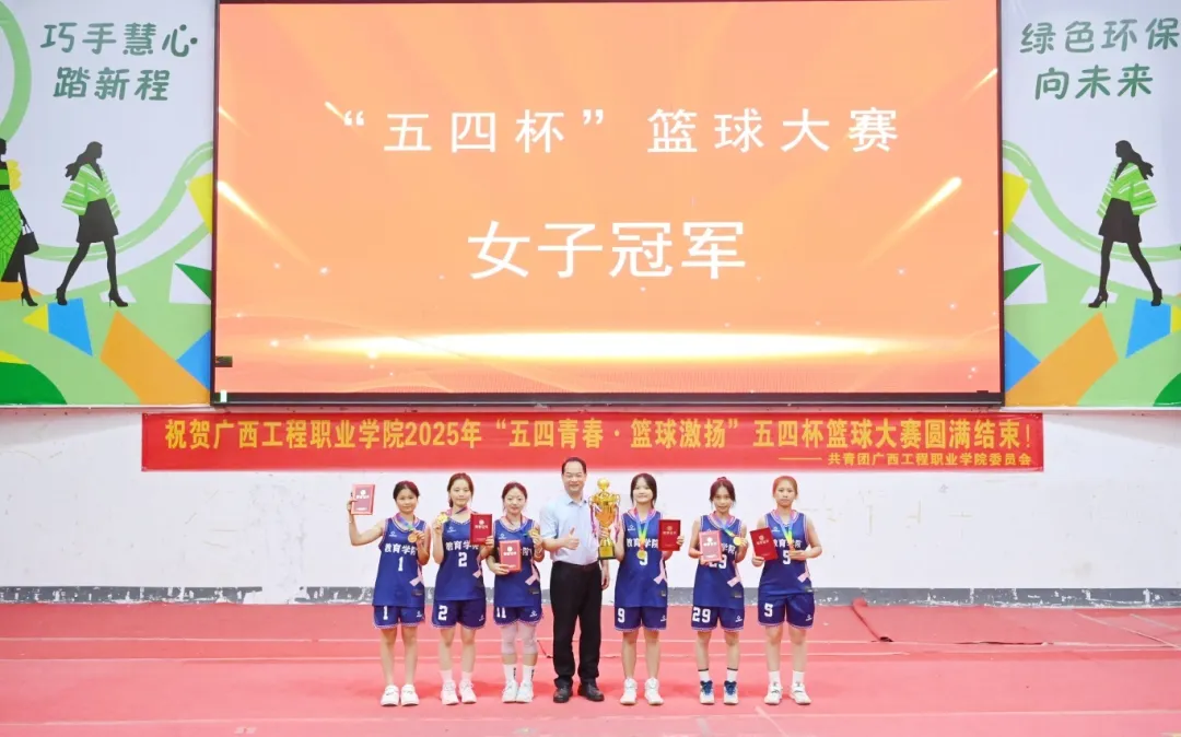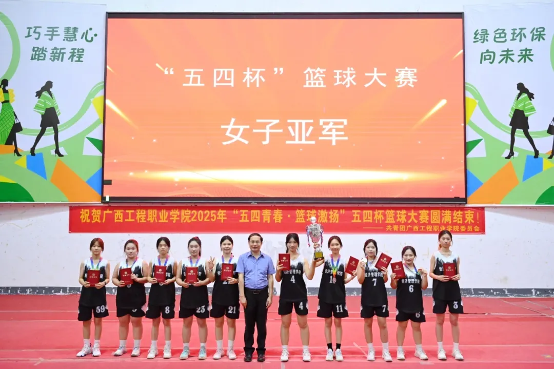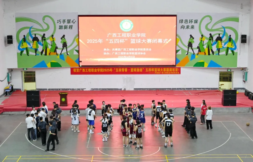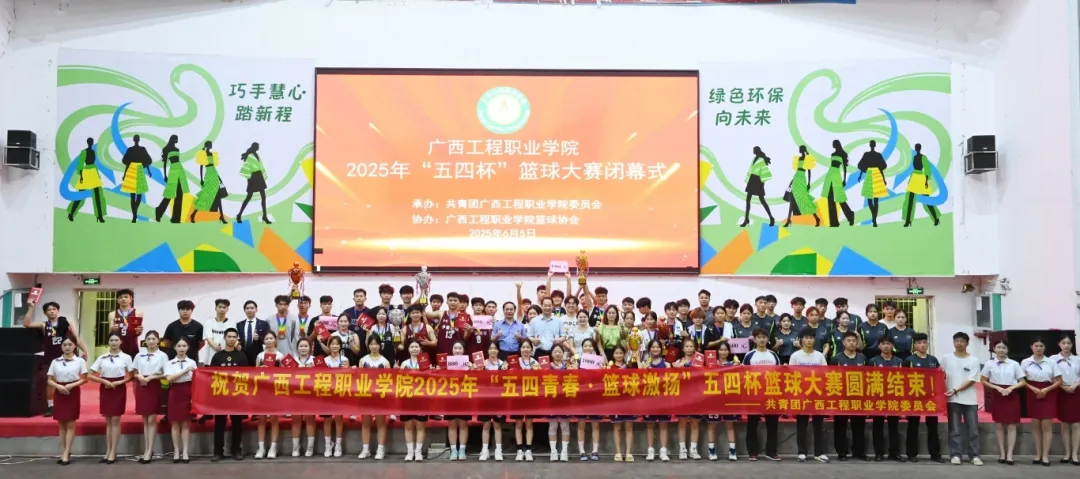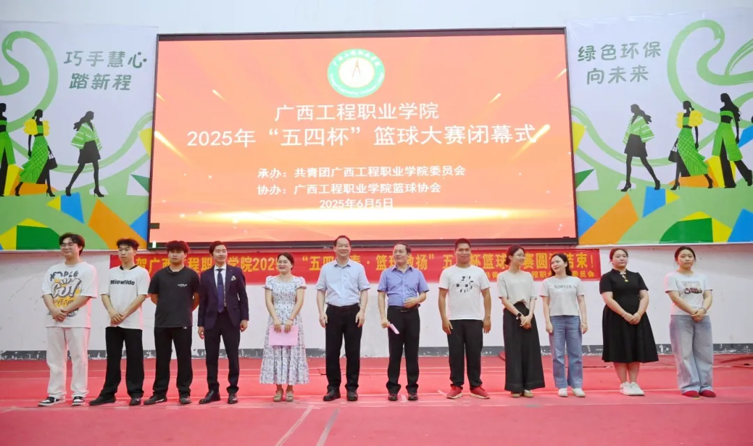 学校党委书记、政府督导专员蒙本曼及副校长黄德伟出席闭幕式,团委副书记李丽清、汽车与机电学院分团委书记陈春任、土木工程学院分团委书记谢小玲、教育学院分团委书记佴蕊、经济管理学院分团委书记谢彩英,校团委苏泽发老师、团委蒋雪莲老师,网络与电教中心黄官达老师、陆定仁老师、陆志飞老师,以及各二级学院师生代表参加2025年“五四杯”篮球大赛闭幕式。