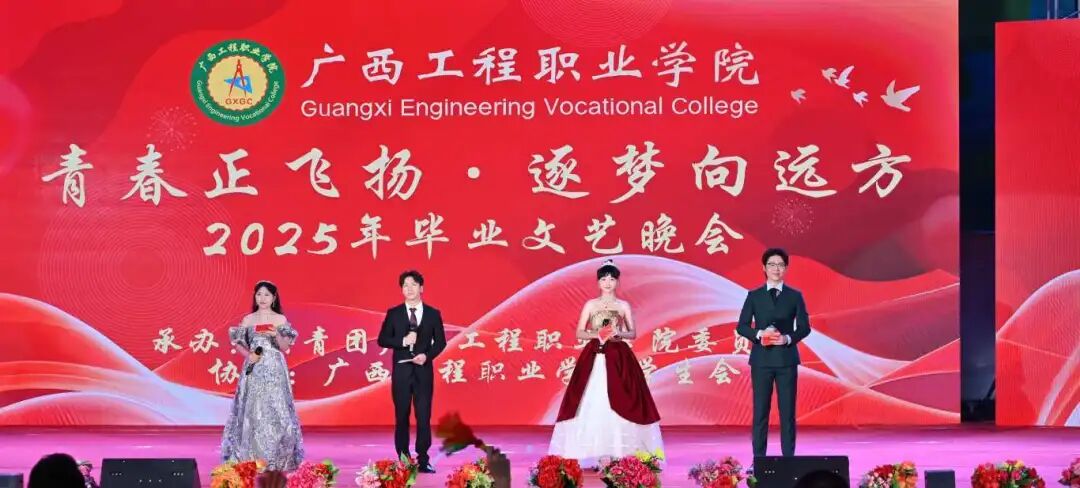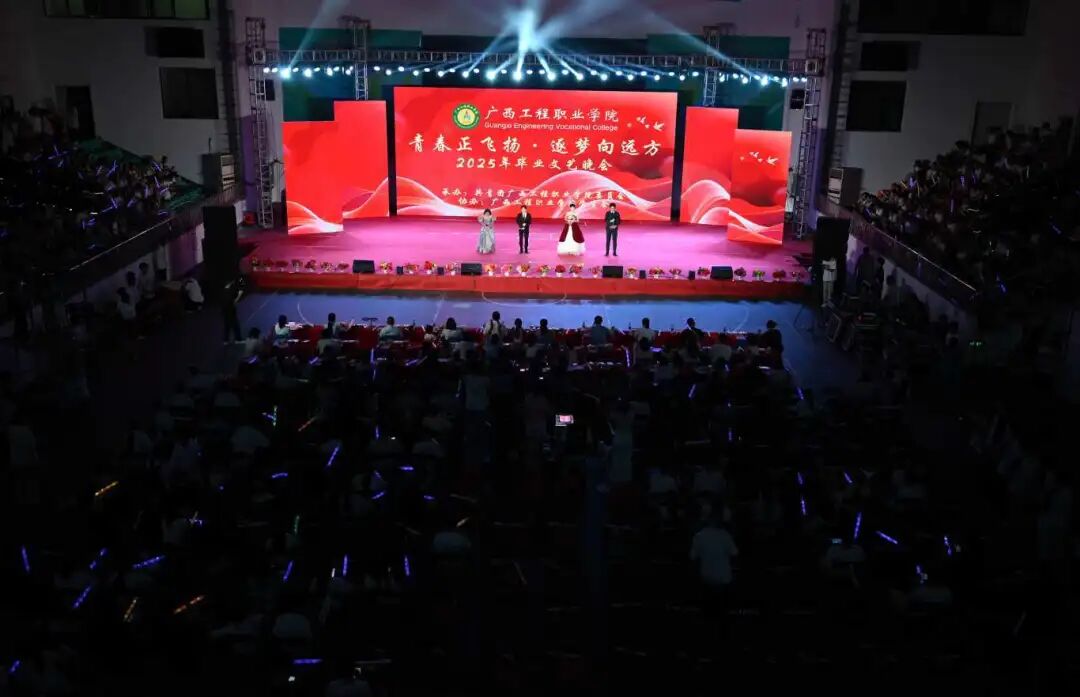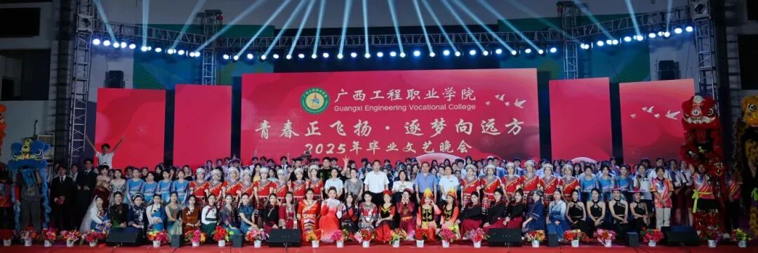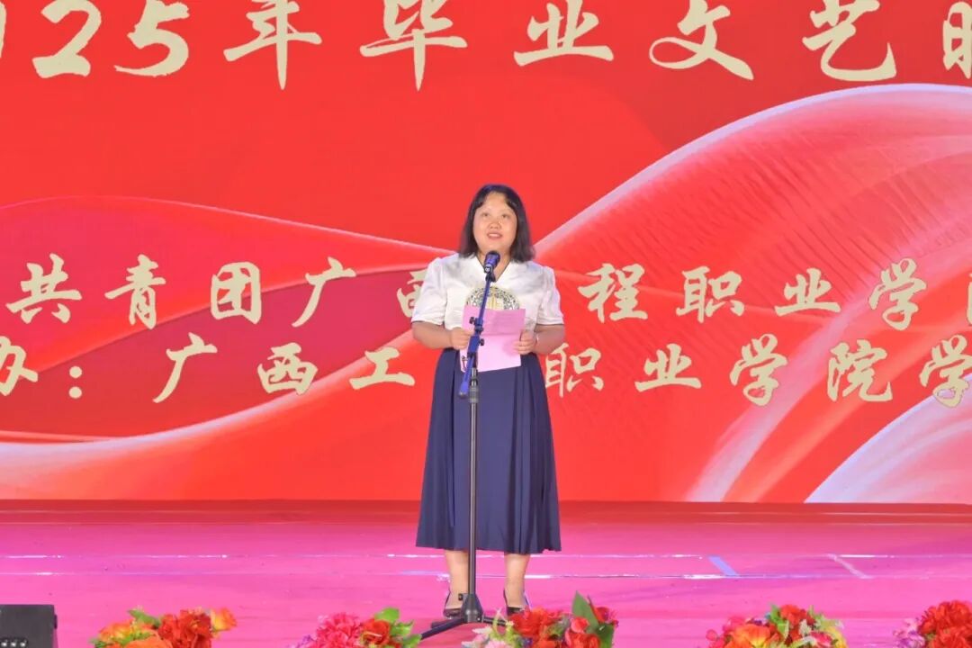 党委书记、督导专员蒙本曼,党委副书记、校长罗艳妮,党委副书记黄秋霞,纪委书记、副校长彭高彬,副校长黄德伟,副校长蒋茂丽,校长助理梁善雅等学校领导出席晚会现场,各部门负责人、全体辅导员及2025届毕业生到现场观看晚会。