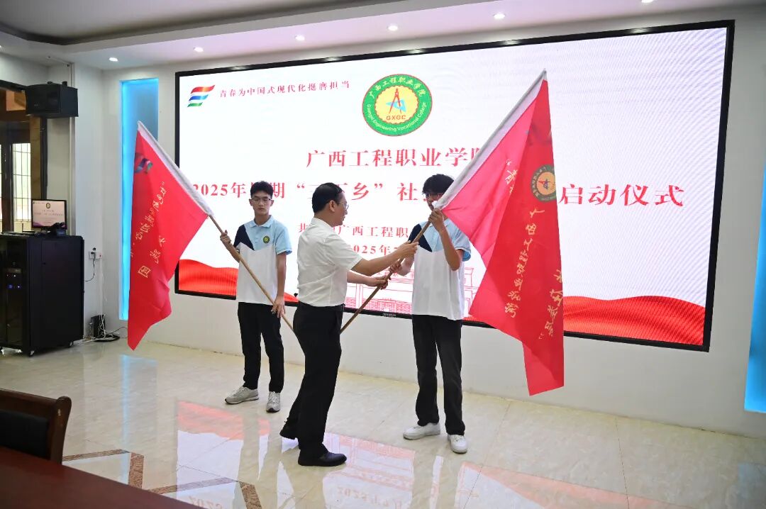 beat365唯一官网2025暑期“三下乡”社会实践活动启动仪式在雄壮激昂的国歌声中拉开序幕。