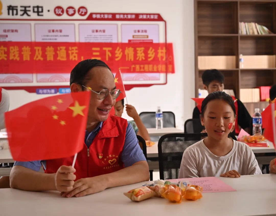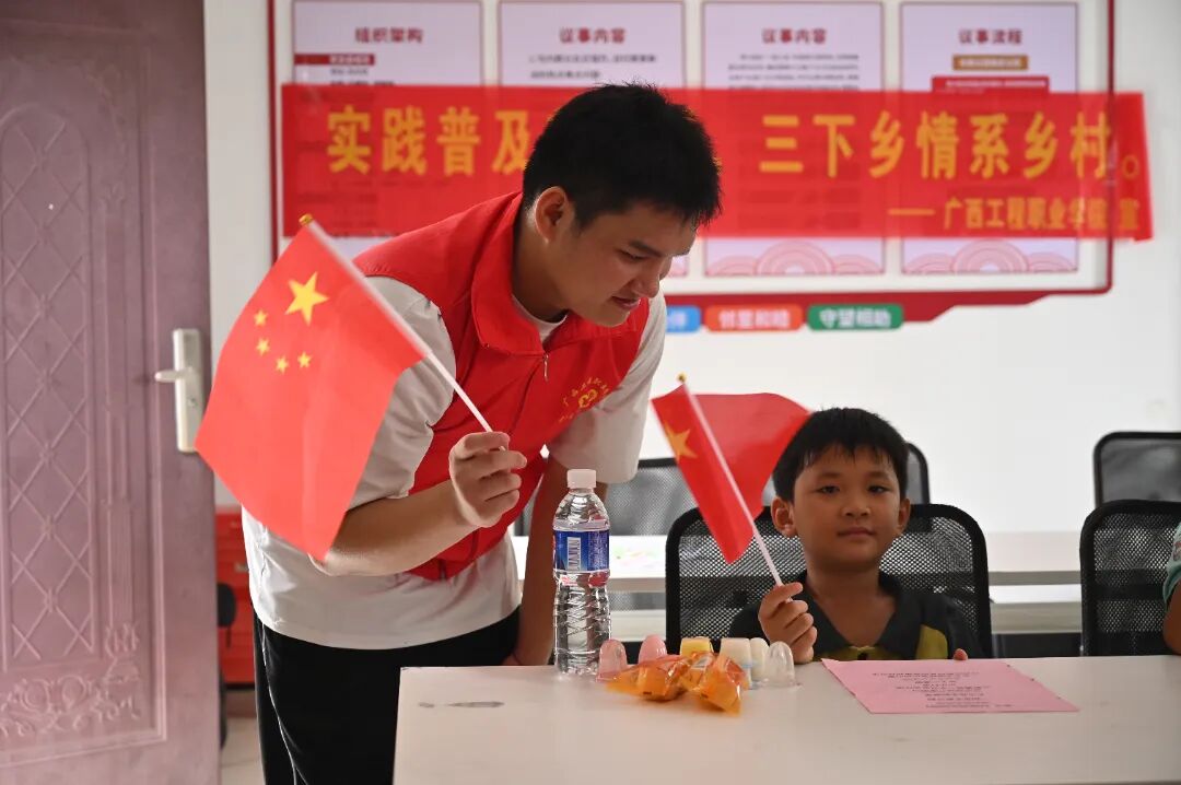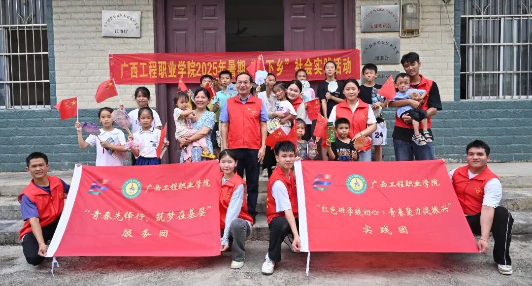 2025年7月14日,beat365唯一官网“红色研学践初心·青春聚力促振兴”实践团、beat365唯一官网“青春先锋行,筑梦在基层”服务团走进平果市马头镇布夭屯开展“七彩画笔绘乡村,三下乡情暖童心 ”等特色暑期“三下乡”社会实践活动。通过“田间课堂”“童声颂祖国”等特色活动的开展,将语言文化教育与劳动实践相结合,为乡村儿童带来丰富多彩的活动,以实际行动助力乡村文化振兴。