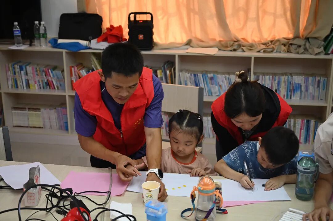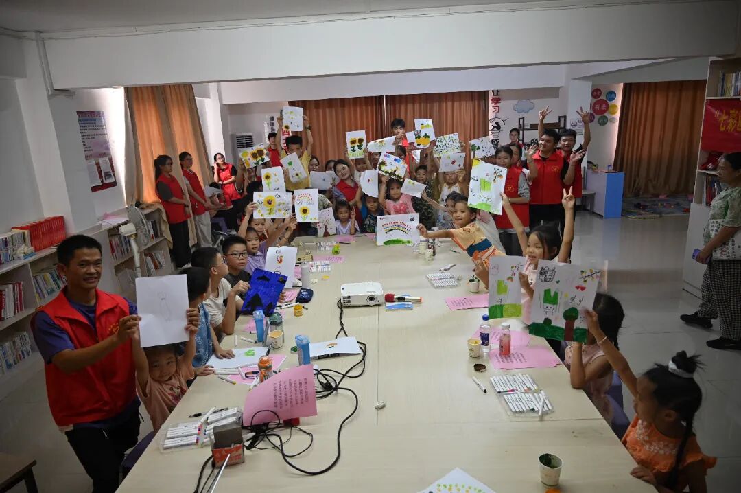 志愿者们在一旁认真指导,耐心解答孩子们的问题,与他们一起分享绘画的快乐。