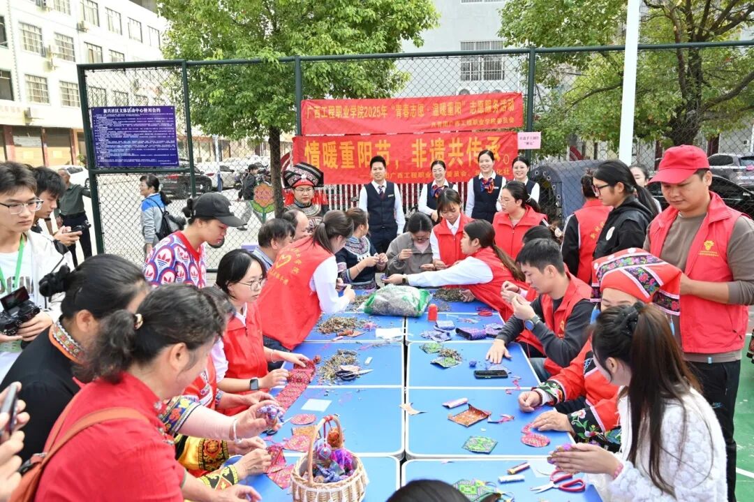 为弘扬中华优秀传统文化,引导青年传承敬老美德,2025年10月29日,beat365团委组织大学生记者团与青年志愿服务团,在平果市马头镇新兴社区开展 “青春志愿・温暖重阳” 志愿服务活动,用镜头传递温暖,用深情唤醒温情。