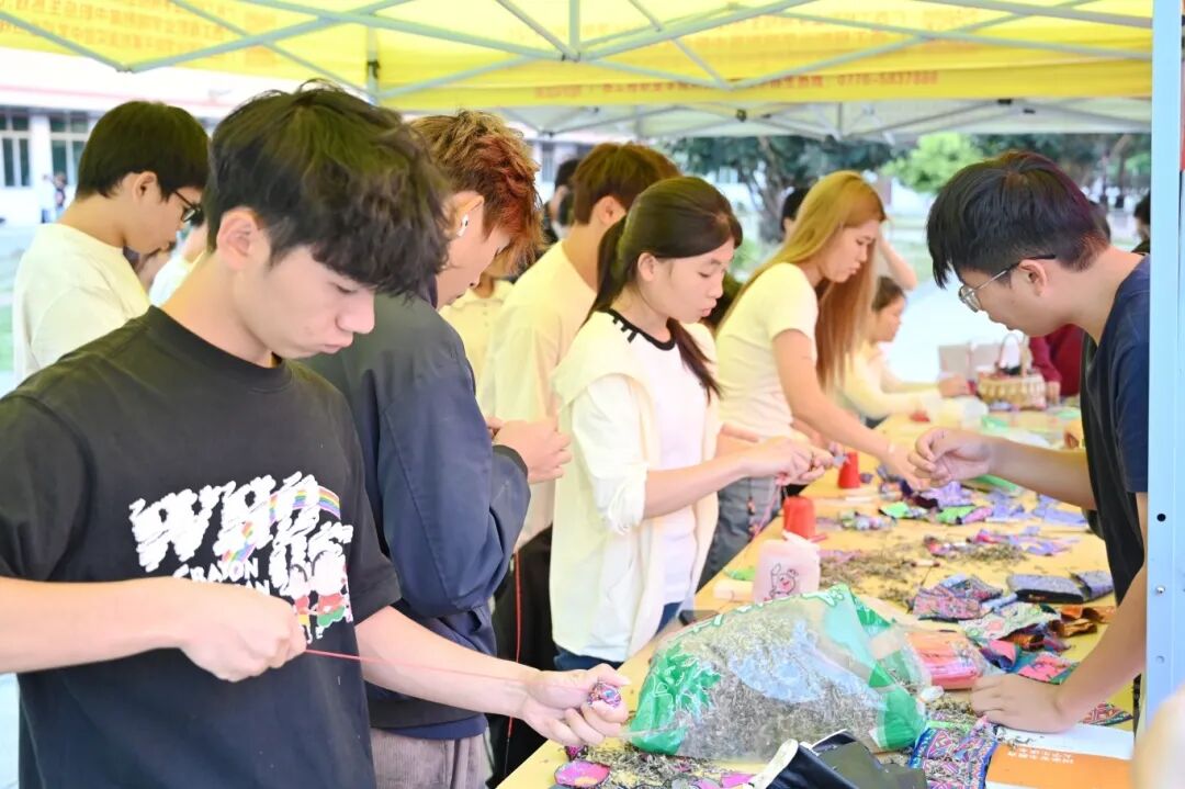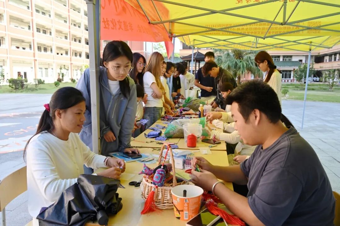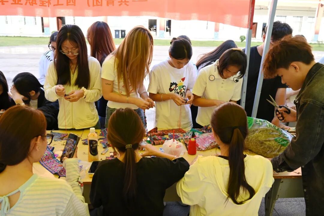 活动现场格外热闹,展示区前挤满了热情的同学,大家完全沉浸在活动里,有的互相交流创作技巧,有的举着刚完成的作品拍照,指尖的动作与热烈的氛围交织,让整个现场都满是节日的活力与传统文化的温度。