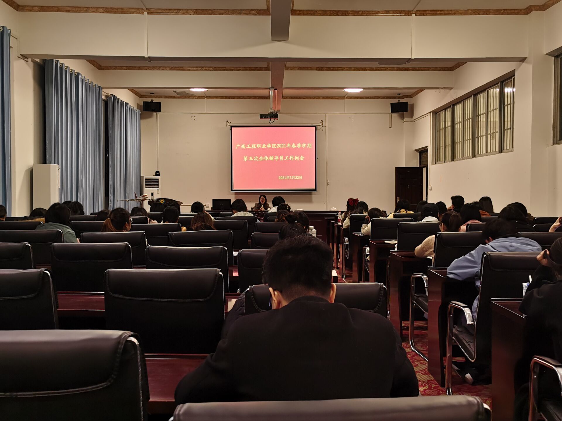 为做好beat365日常学生管理工作,2021年3月23日下午,学生工作处在旧图书馆学术报告厅组织召开本学期第二次全体辅导员工作会议。学生工作处工作人员、各二级学院全体辅导员参加了会议,本次会议由校长助理黄秋霞主持。