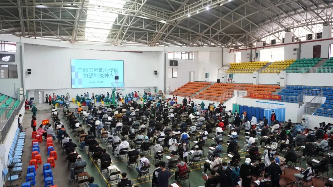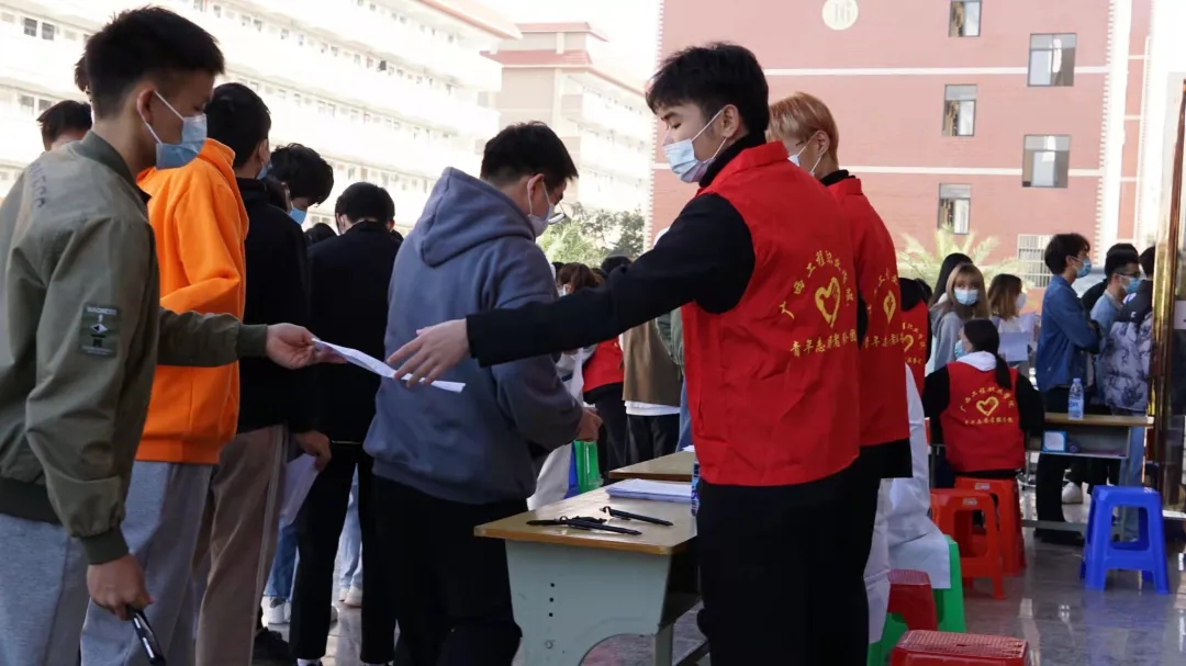 在学校的精心组织和志愿者的指导下,同学们有序进行扫码测温、填表咨询、信息核验、登记、接种等。