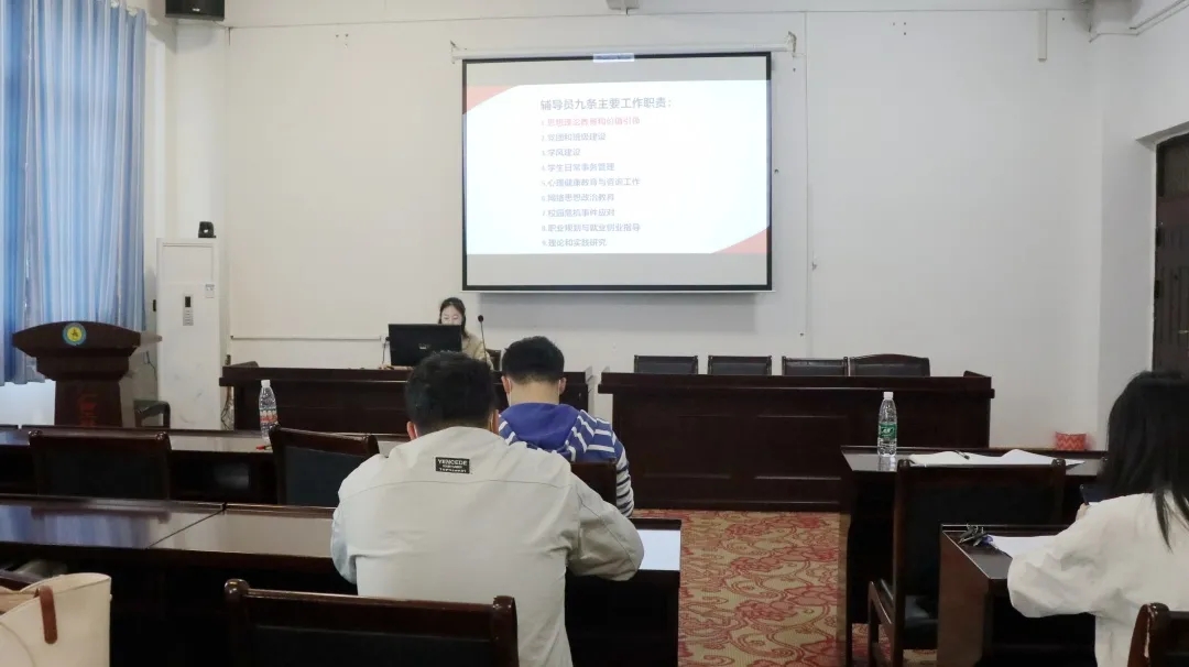 覃兰兰老师就辅导员九条工作职责及谈心谈话技巧进行了经验交流