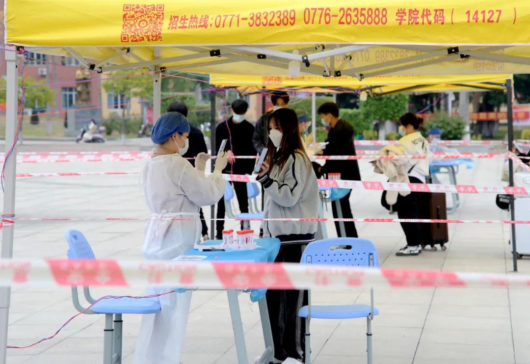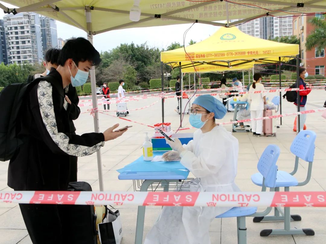 志愿者们积极指导同学注册核酸检测码,引导排队检测