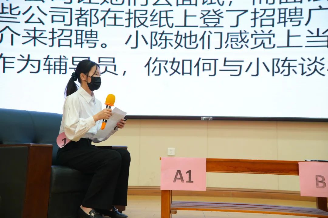 黄秋霞副书记围绕“谈心谈话”环节和“案例研讨“”环节进行点评,她对选手们展现出来的良好政治素养和职业能力表示充分肯定,并提出了优化和改进实际工作的建议,希望辅导员进一步加深对理论政策的研究和理解,摸清学生的思想脉搏,增强解决实际问题的能力,以情怀相伴,以责任同行,为学生成长成才护航。