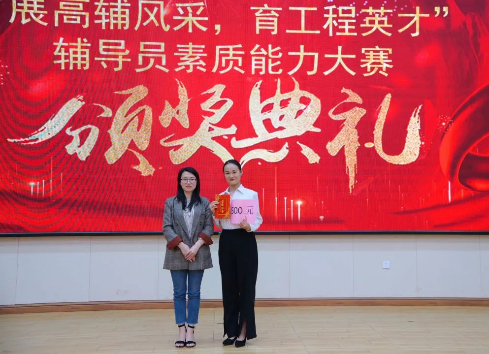 杨竟、梁欣欣副院长分别为荣获优胜奖的辅导员颁奖